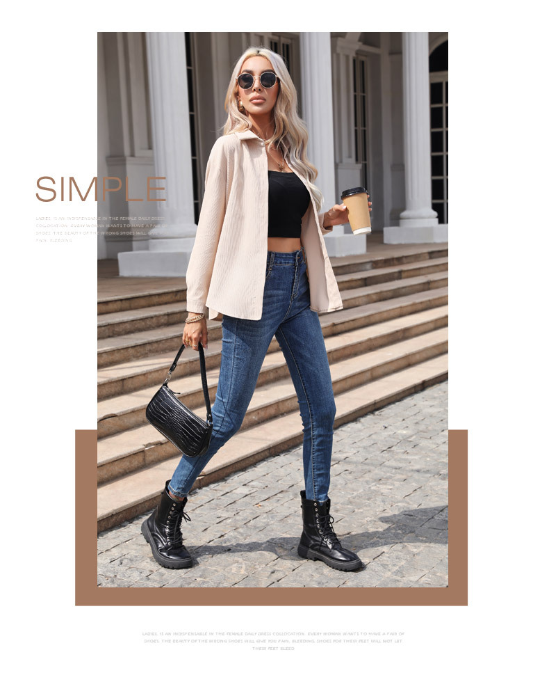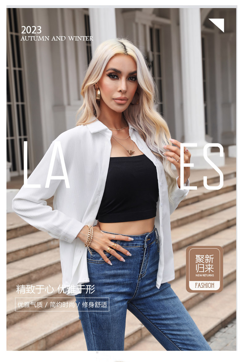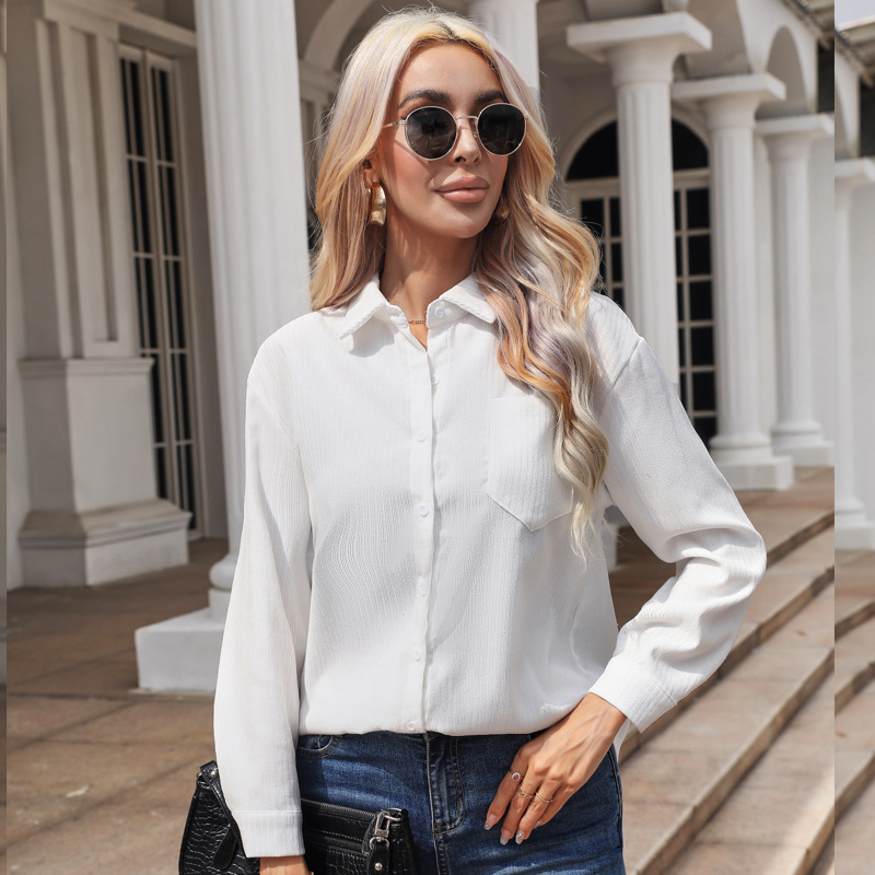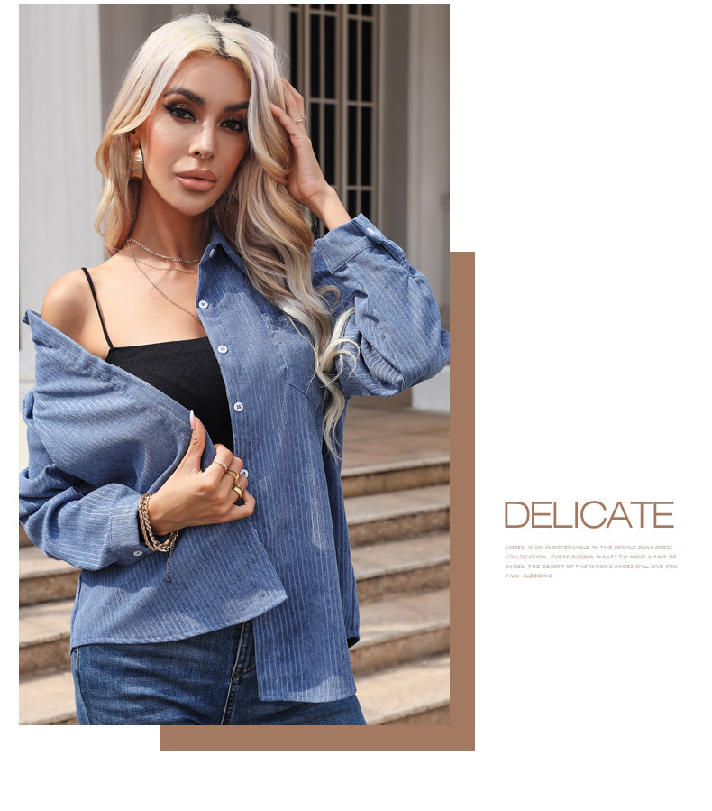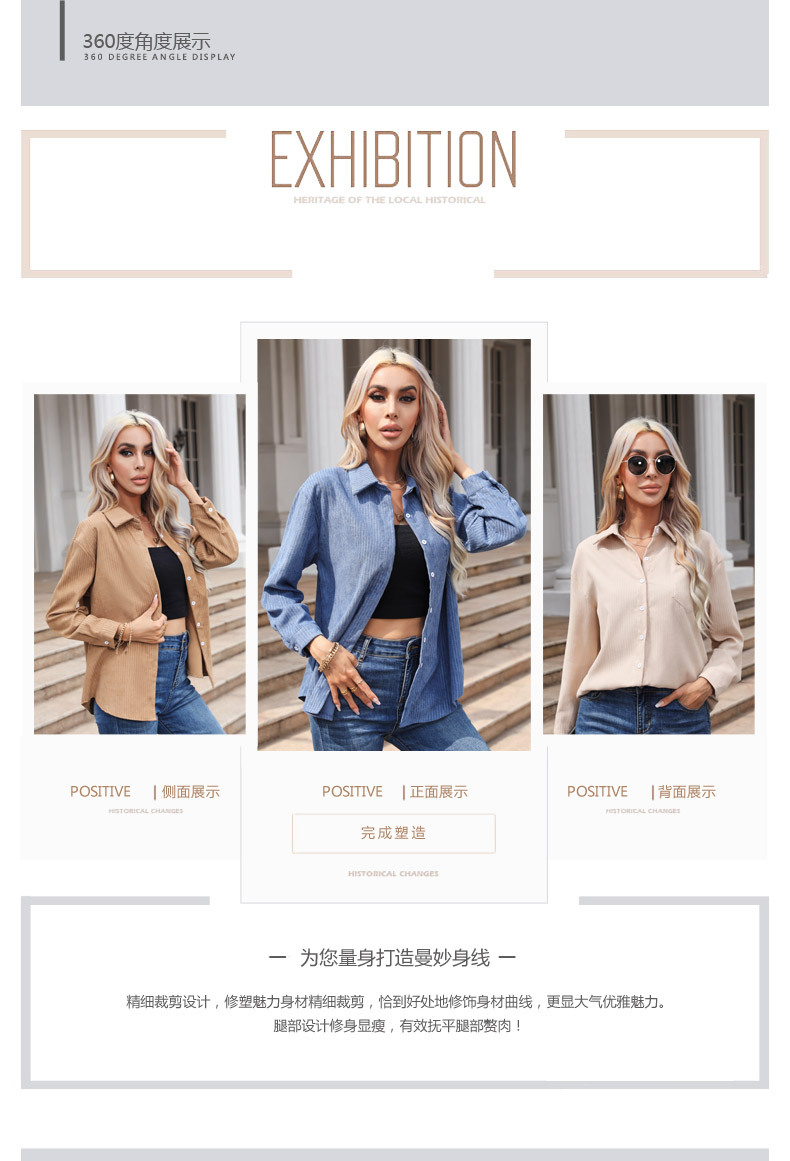 국경 간 유럽 및 미국 대외 무역 여성 의류 아마존 2023 봄과 가을 새로운 코듀로이 캐주얼 느슨한 긴 소매 셔츠 탑스토어 가기