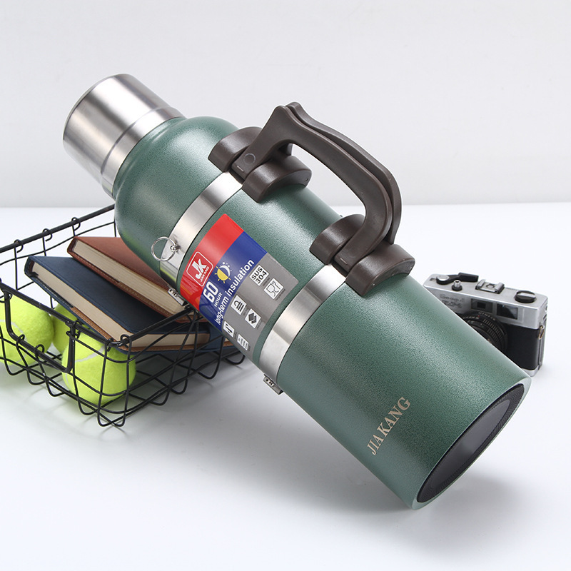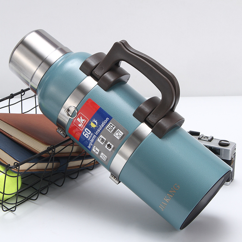 Jiakang 대용량 304 스테인레스 스틸 절연 주전자 더블 레이어 진공 등산 스포츠 주전자 자동차 여행 절연 주전자스토어 가기