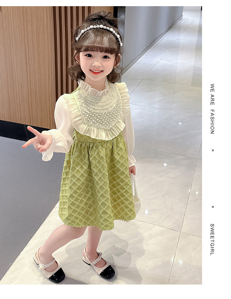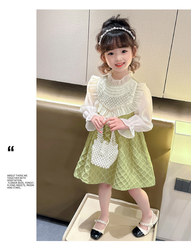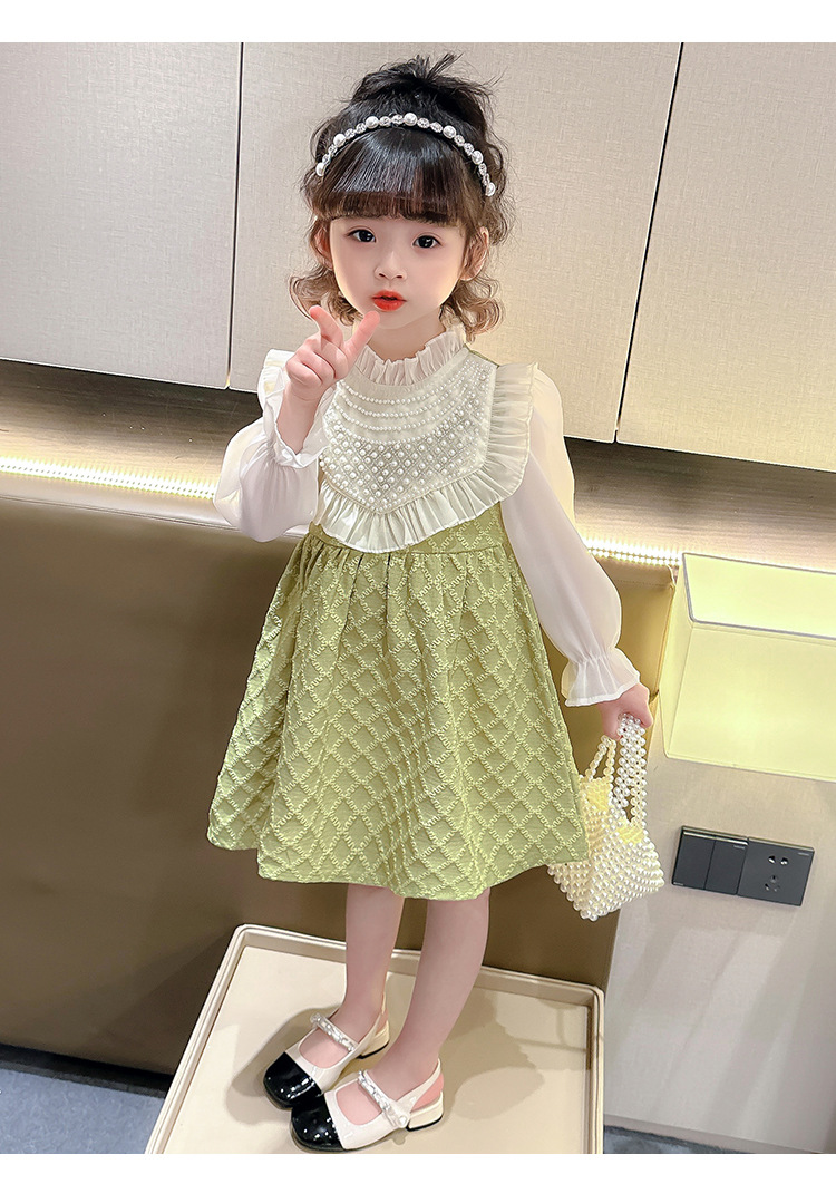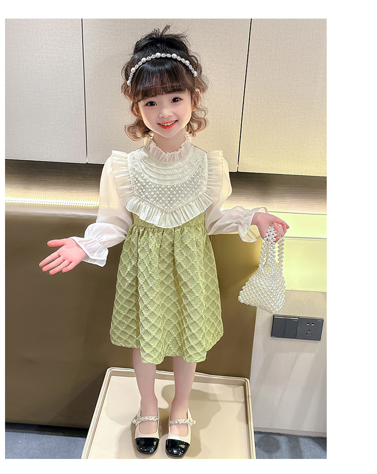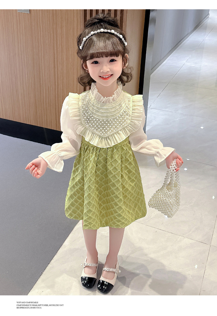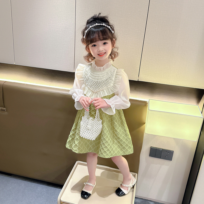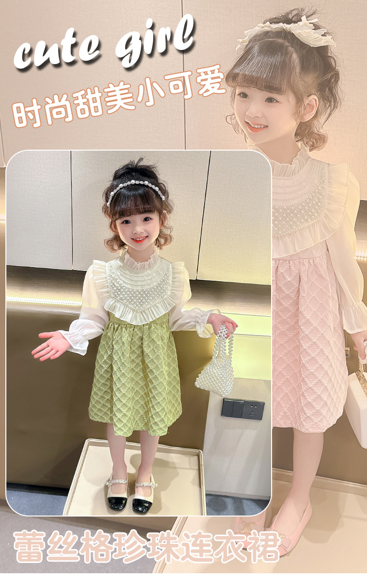 외국 무역 여아 레이스 진주 드레스 봄 가을 신상 아동 한국 스타일 패션 어린 소녀 공주 드레스 아동복 트렌드스토어 가기