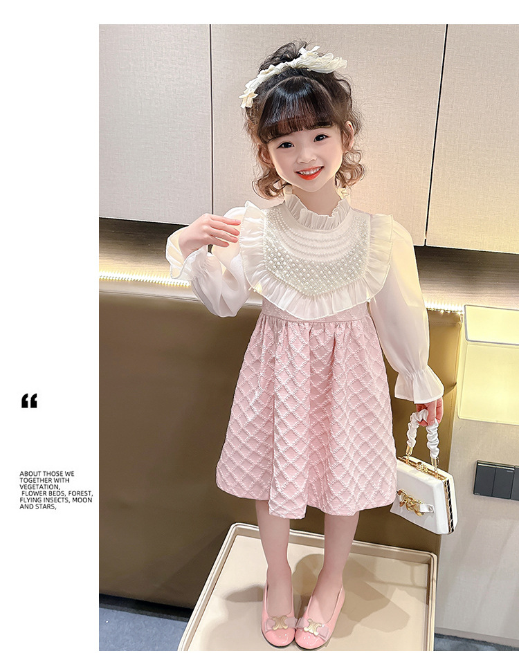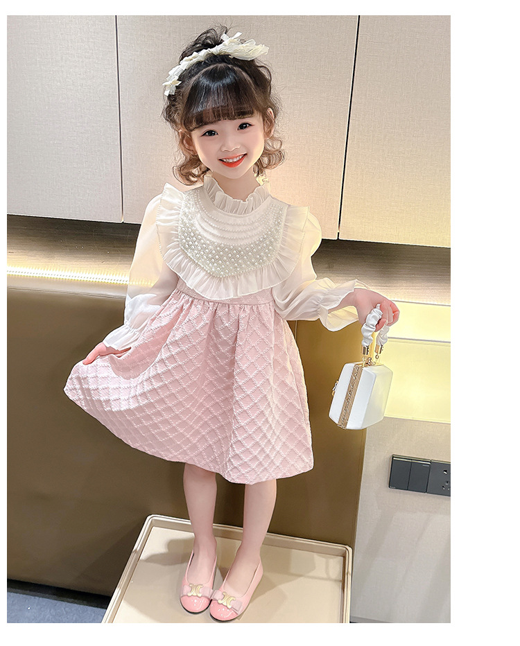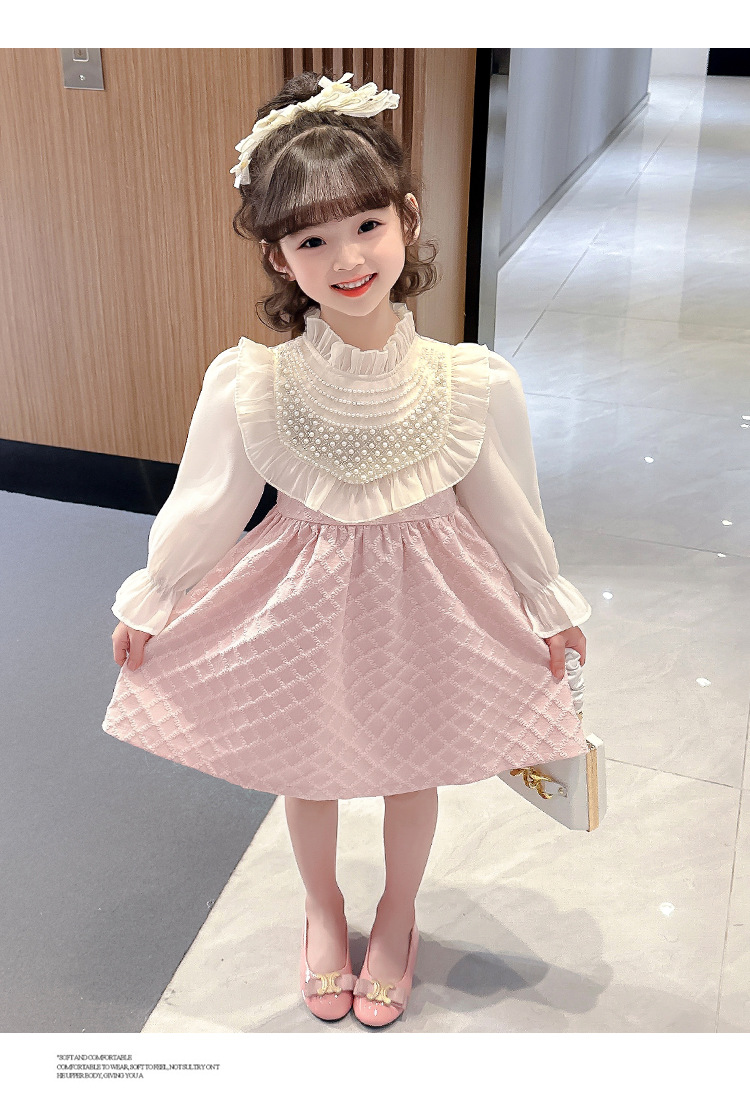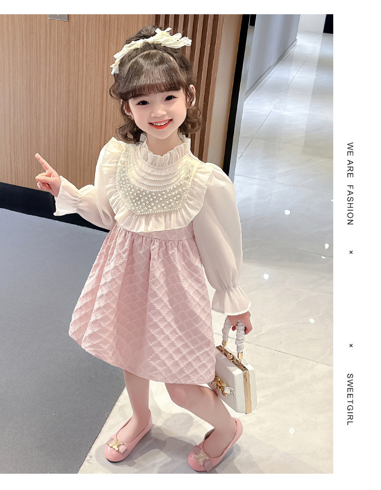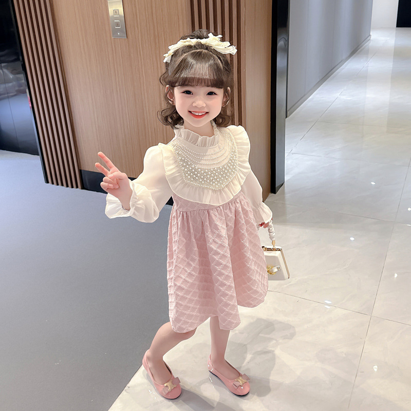 외국 무역 여아 레이스 진주 드레스 봄 가을 신상 아동 한국 스타일 패션 어린 소녀 공주 드레스 아동복 트렌드