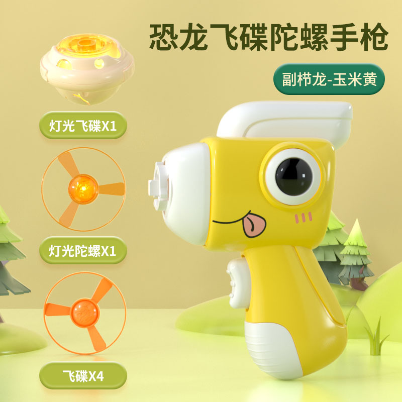 국경 간 만화 공룡 트리케라톱스 자이로 발광 비행 접시 회전 발사 자이로 총 빛 프리스비 도매 선물스토어 가기
