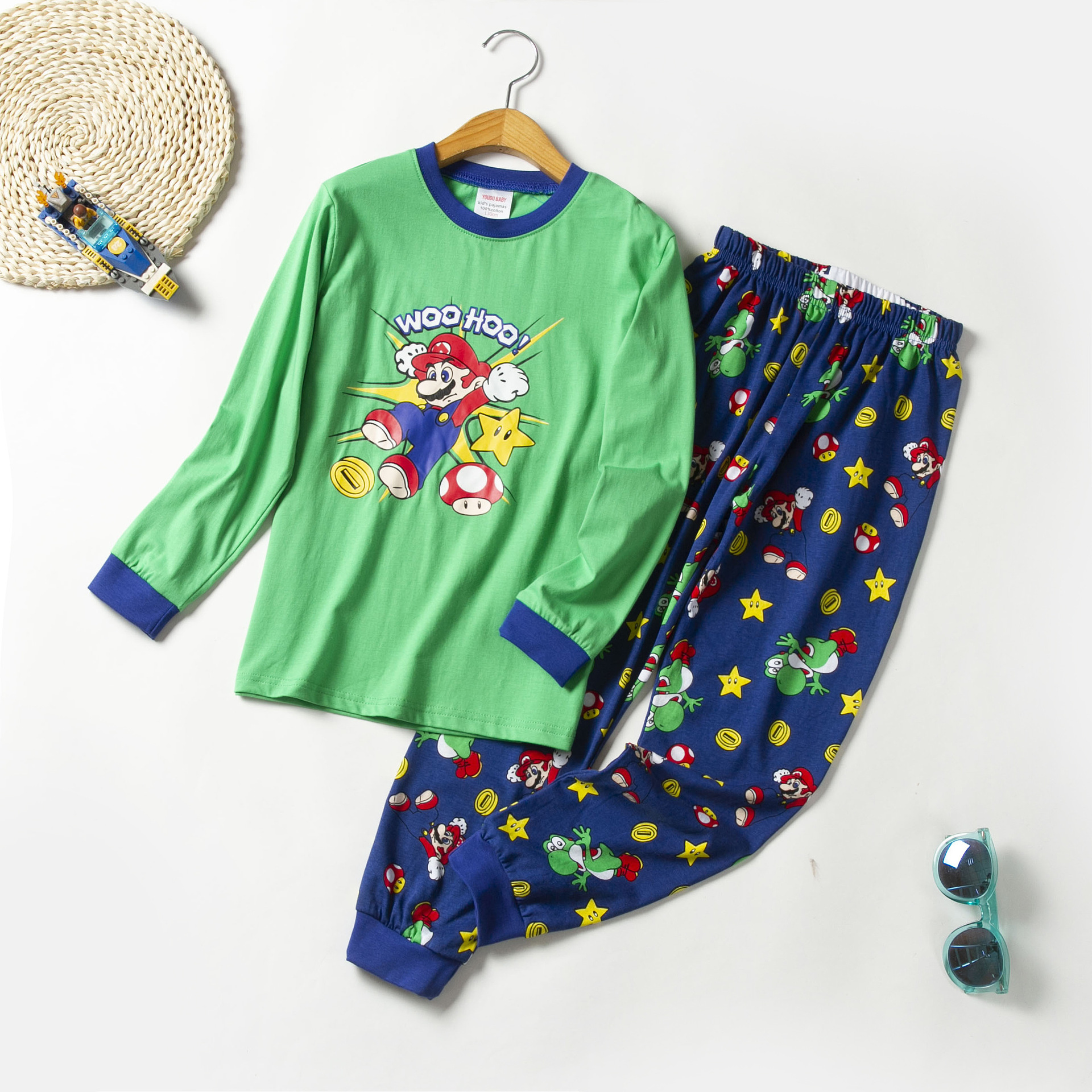 어린이 새 소년 가정복 어린이 면 세트 마리오 인쇄 라운드 넥 가정복 2 종 에어컨 옷스토어 가기