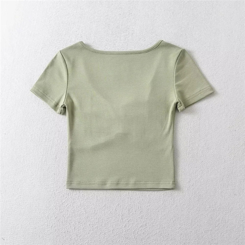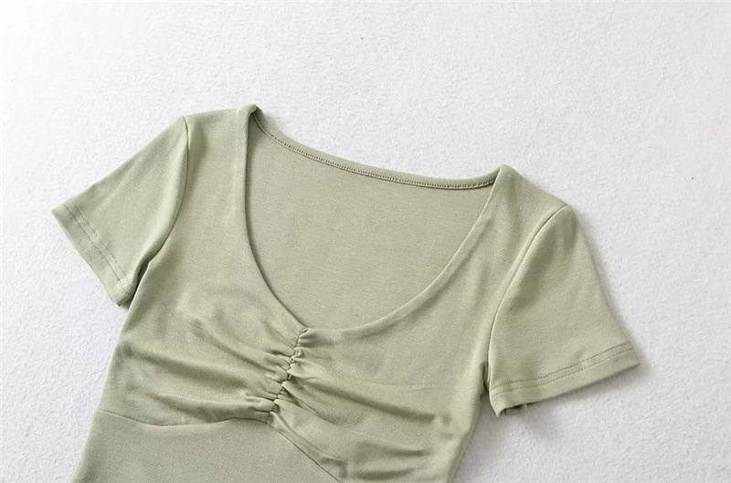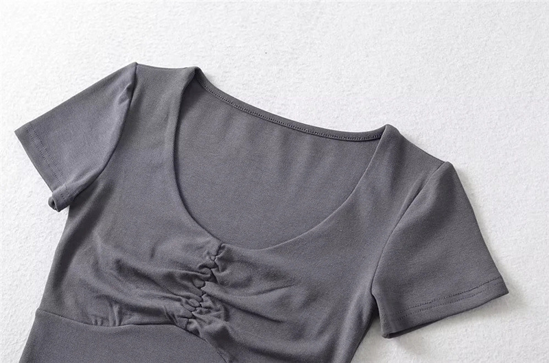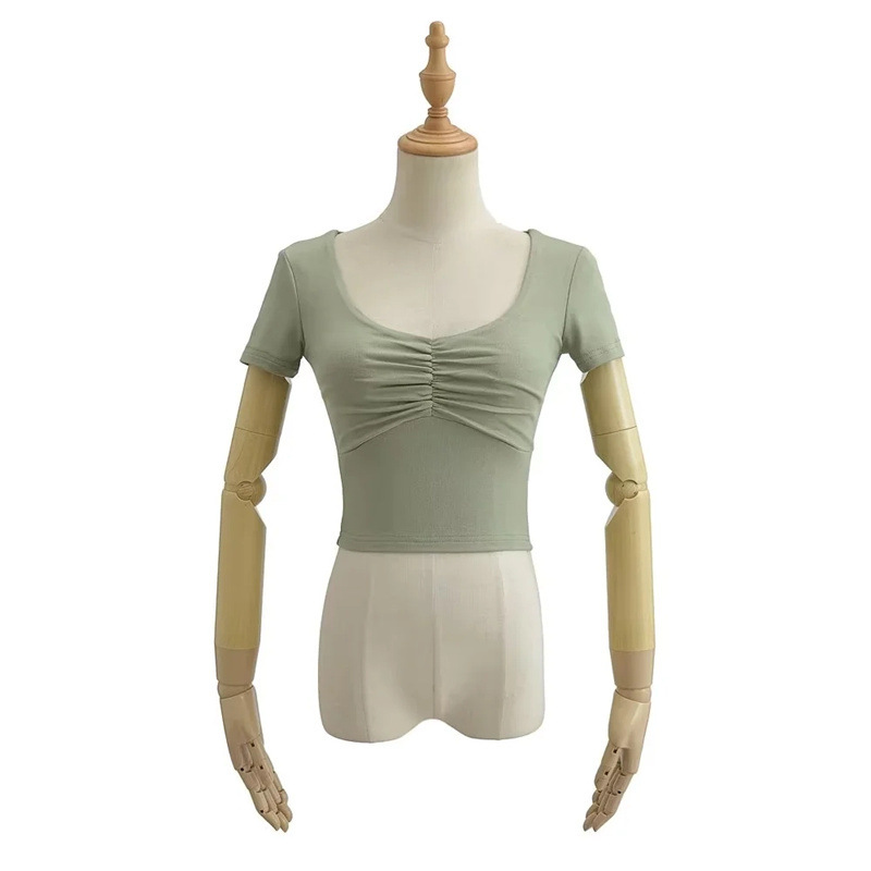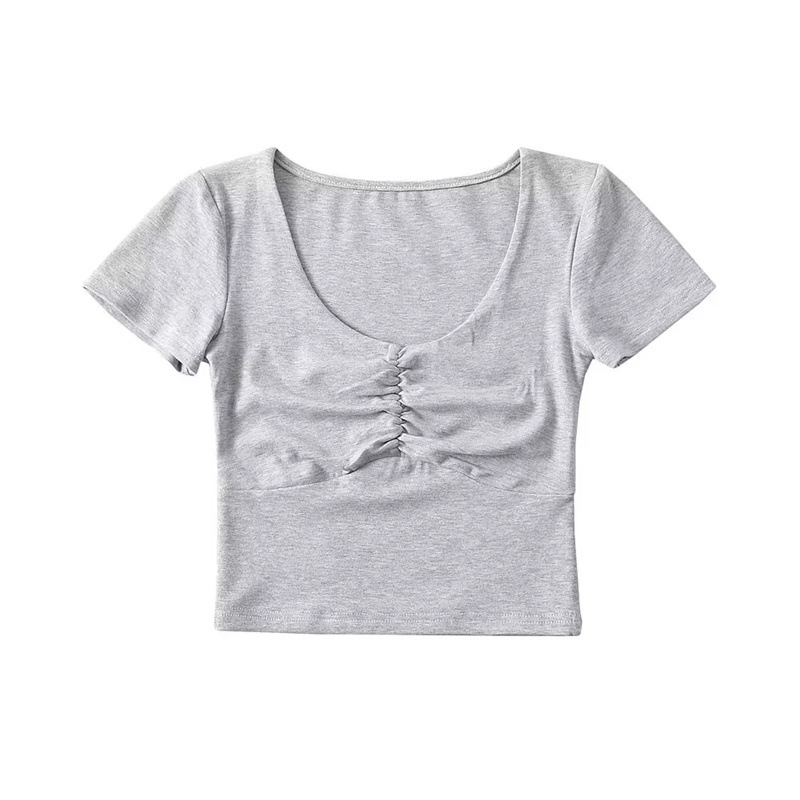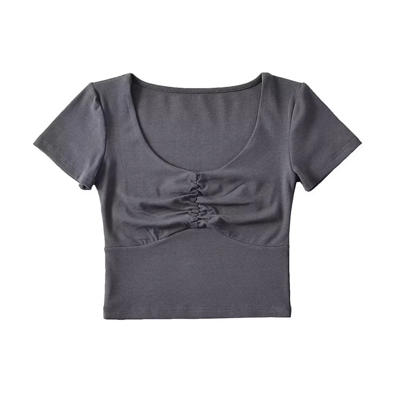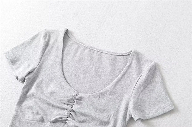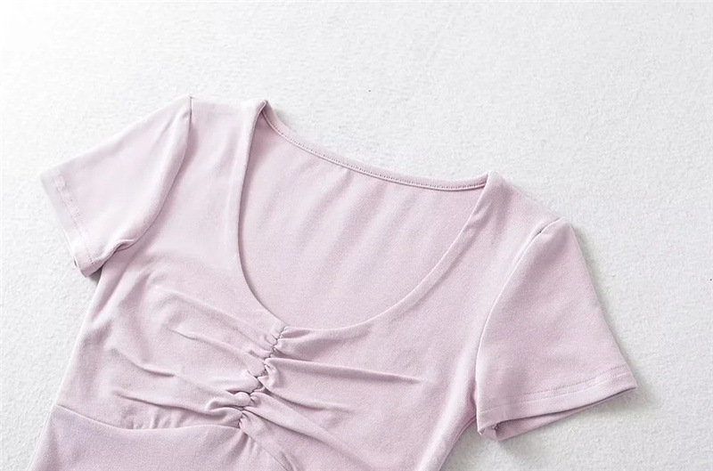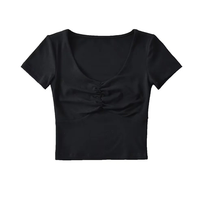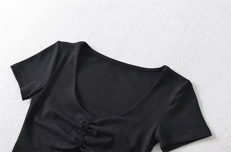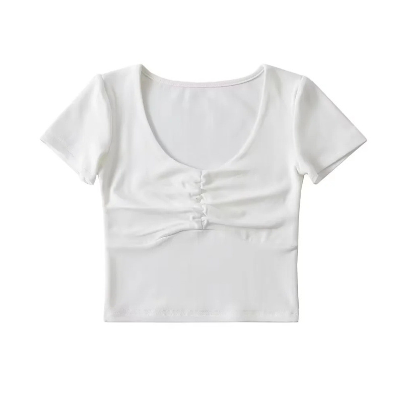 아메리칸 스타일 레트로 플리츠 라운드 넥 반팔 티셔츠 여름 새로운 슬림핏 슬리밍 짧은 배꼽 노출 스파이스 걸 탑스토어 가기