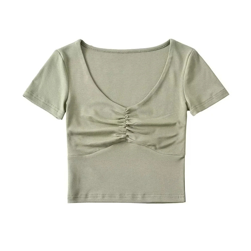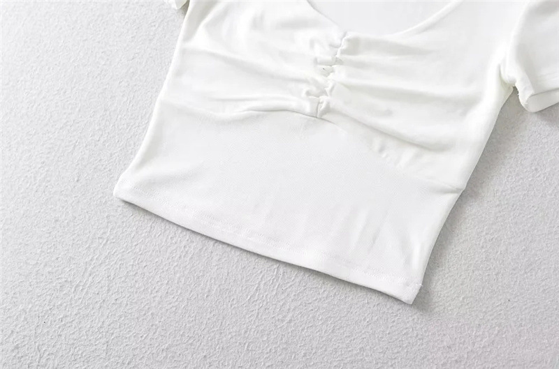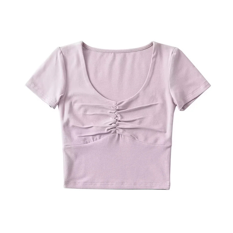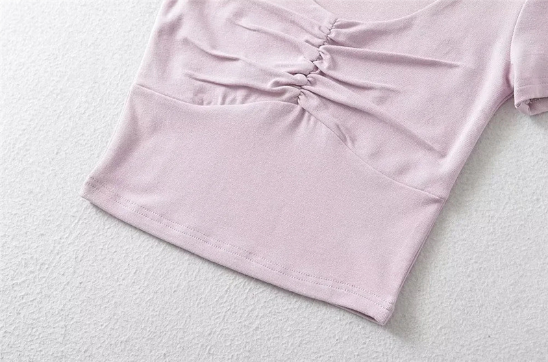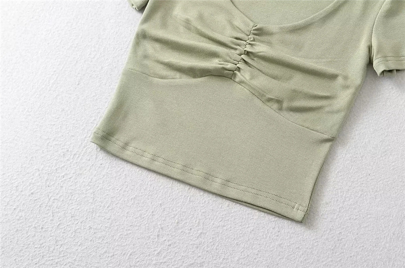 아메리칸 스타일 레트로 플리츠 라운드 넥 반팔 티셔츠 여름 새로운 슬림핏 슬리밍 짧은 배꼽 노출 스파이스 걸 탑