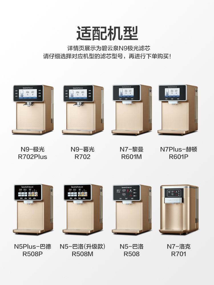 Biyunquan 정수기 필터 요소 데스크탑 마시는 기계 N9 오리지널 소모품 R702 컬렉션/R702Plus 오로라스토어 가기