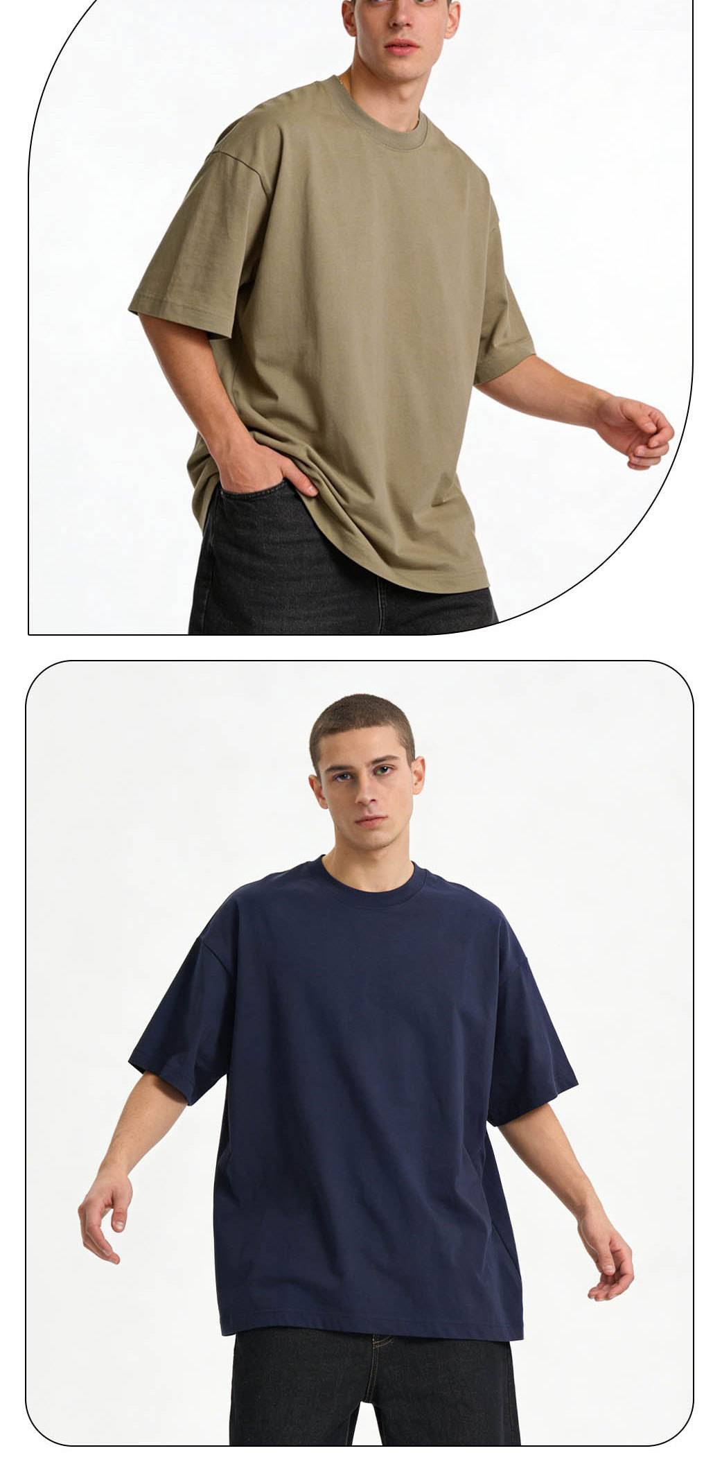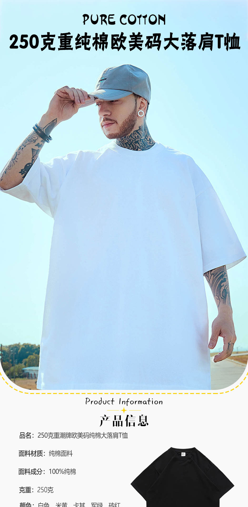 250g 미국 스타일 반팔 순면 루즈핏 오버사이즈 유럽 및 미국 힙합 트렌드 브랜드 빅숄더 반팔 티셔츠 남성용