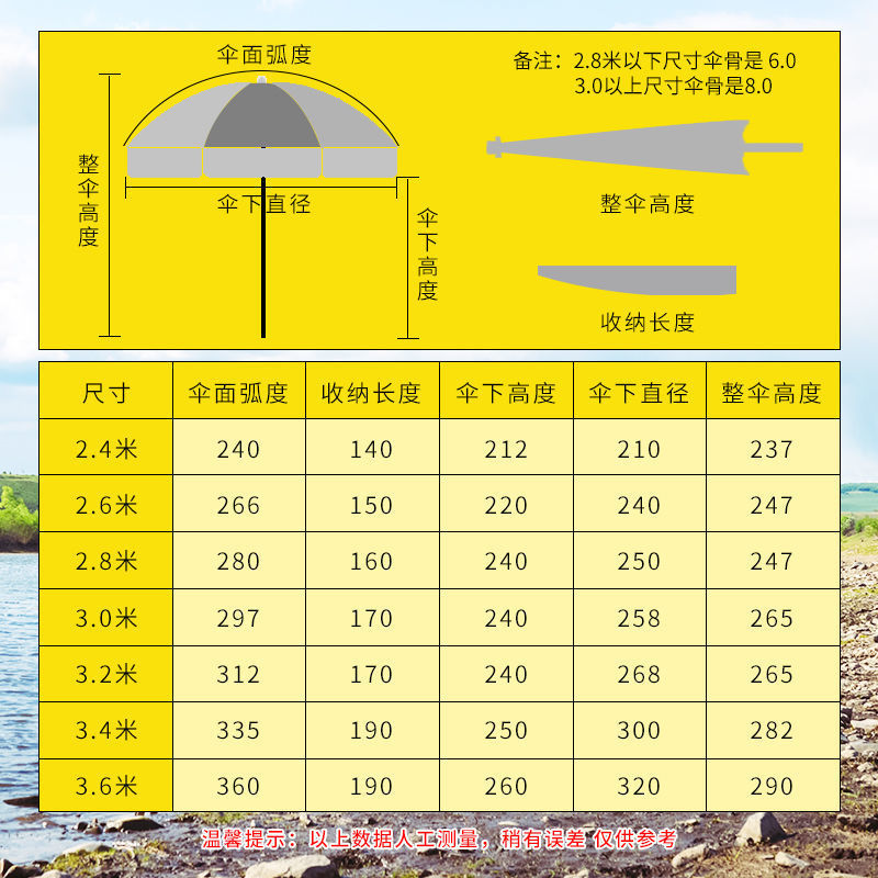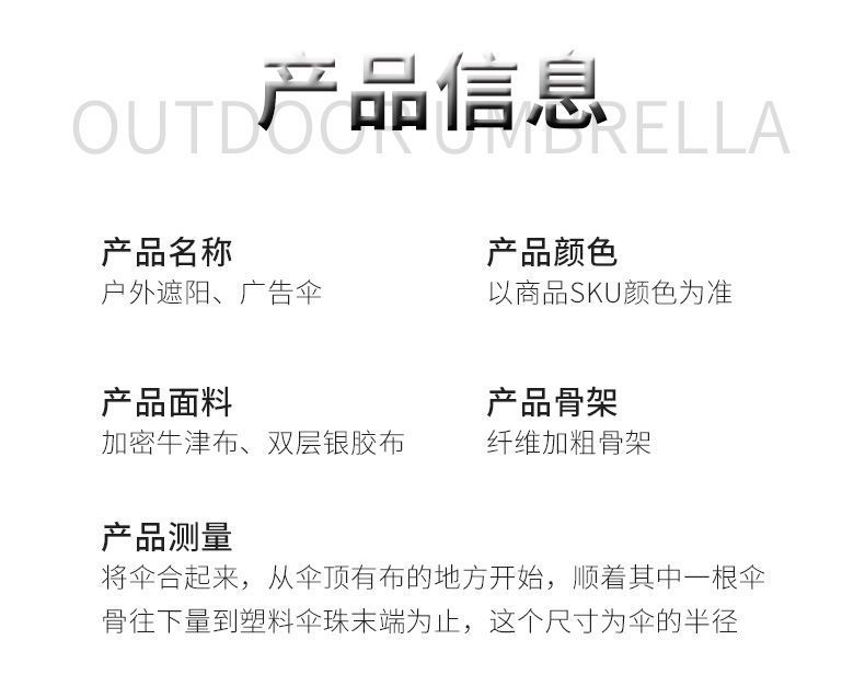 • 3.6 M 8.0 뼈 단일 레이어 우산 표면