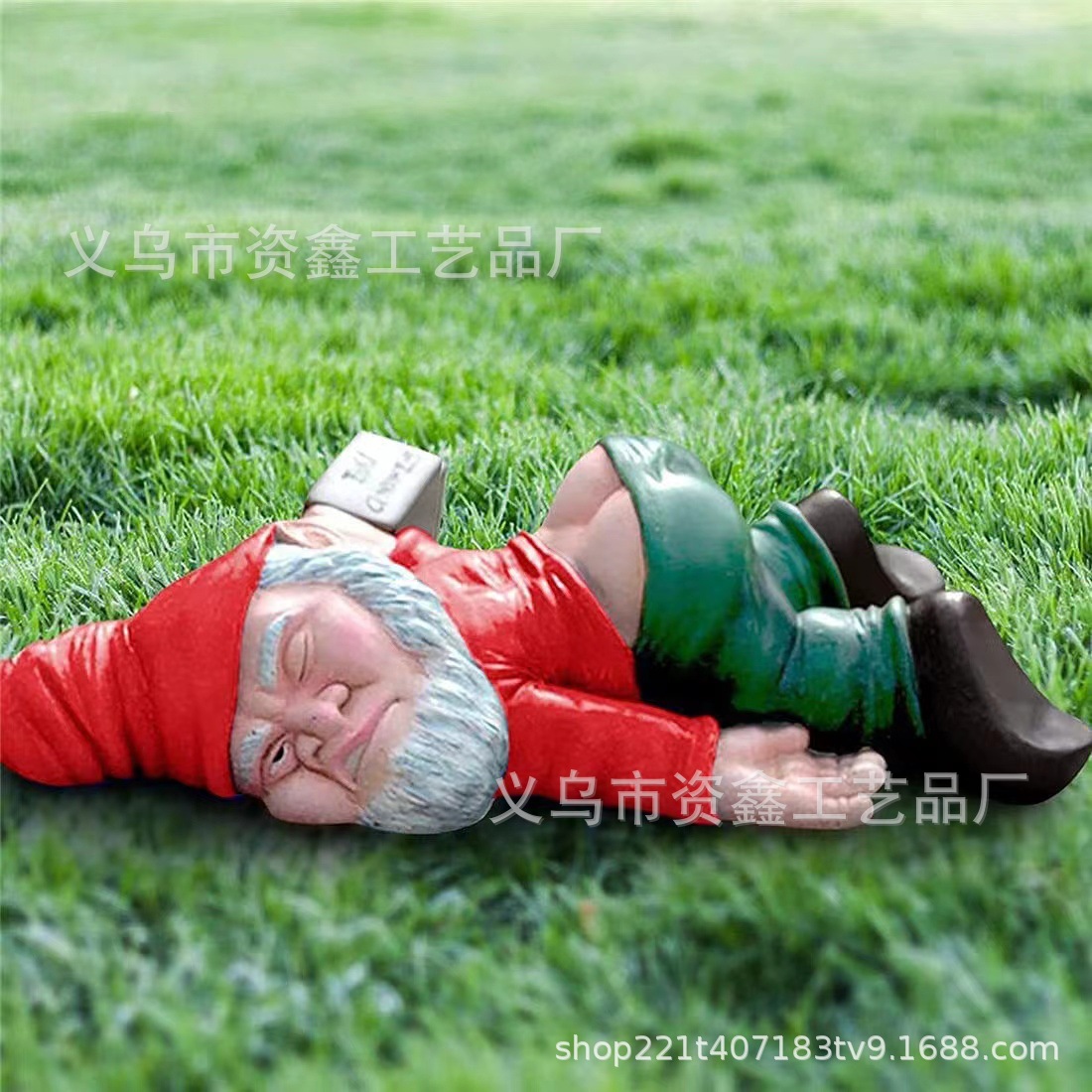 국경 간 재미있는 술취한 정원 드워프 야외 실내 안뜰 잔디 현관 장식 동상 수지 공예스토어 가기
