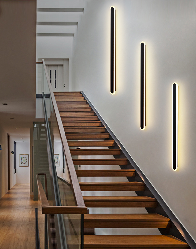 북유럽 모던 스타일의 직선형 벽등, 세련된 계단, 복도, 거실, 침실 조명, TV 벽, 소파 배경 조명, 럭셔리한 분위기