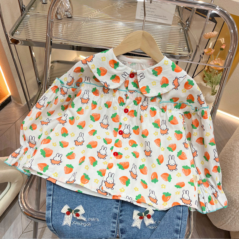 여자 셔츠 아기 긴 소매 2025 봄 어린이 꽃 셔츠 여자 탑 아기 토끼 공주 셔츠