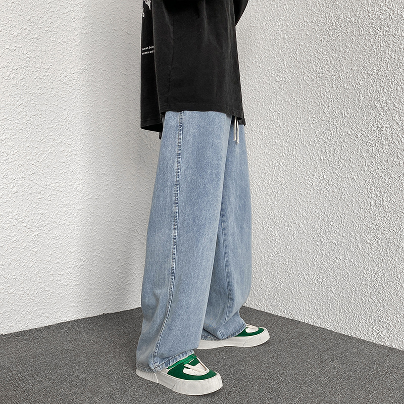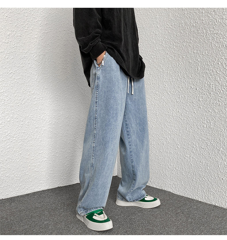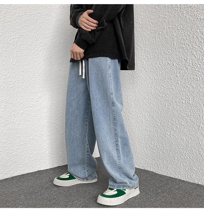 청바지 남자의 봄과 가을 패션 브랜드 느슨한 스트레이트 아메리칸 스타일 하이 스트리트 블랙 와이드 레그 팬츠 가을과 겨울 캐주얼 롱 팬츠