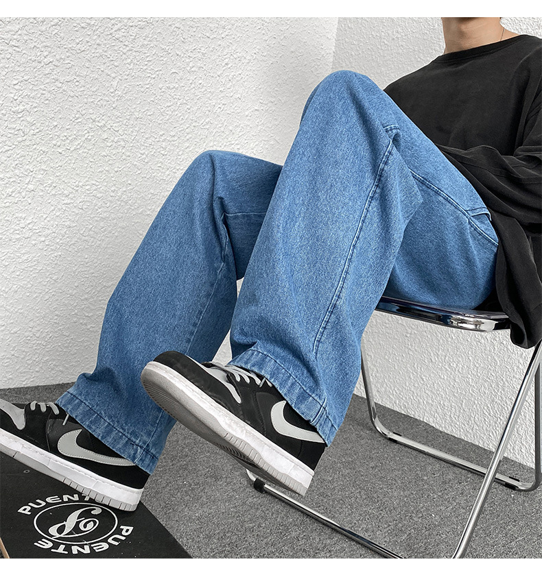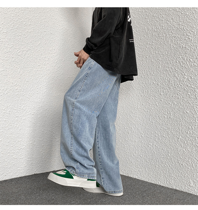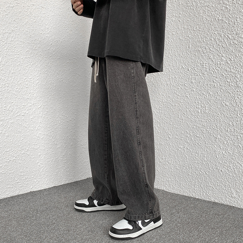 청바지 남자의 봄과 가을 패션 브랜드 느슨한 스트레이트 아메리칸 스타일 하이 스트리트 블랙 와이드 레그 팬츠 가을과 겨울 캐주얼 롱 팬츠스토어 가기