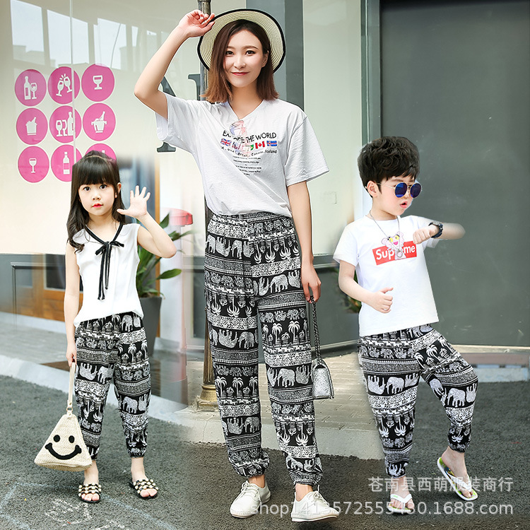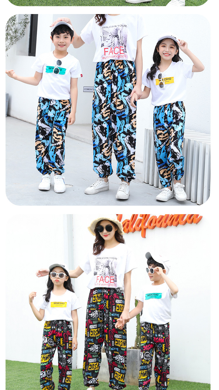 새로운 어린이 랜턴 바지 소년 여름 모기 방지 바지 소녀 면 실크 얇은 캐주얼 에어컨 바지 부모-자식 바지스토어 가기