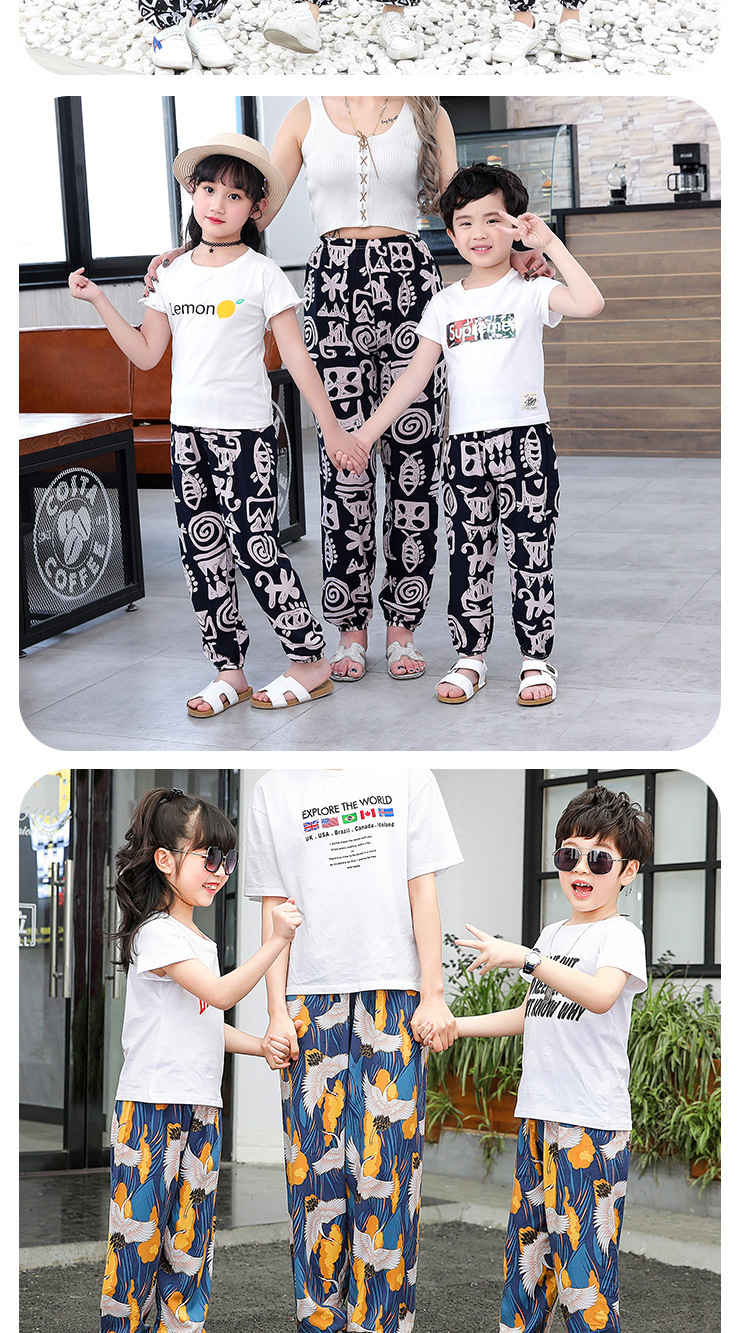 새로운 어린이 랜턴 바지 소년 여름 모기 방지 바지 소녀 면 실크 얇은 캐주얼 에어컨 바지 부모-자식 바지