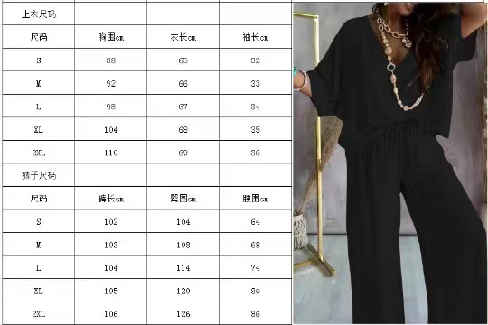 재고 국경 간 아마존 알리 익스프레스 독립 스테이션 2023V 칼라 배트 윙 슬리브 캐주얼 느슨한 와이드 레그 팬츠 세트 여성스토어 가기