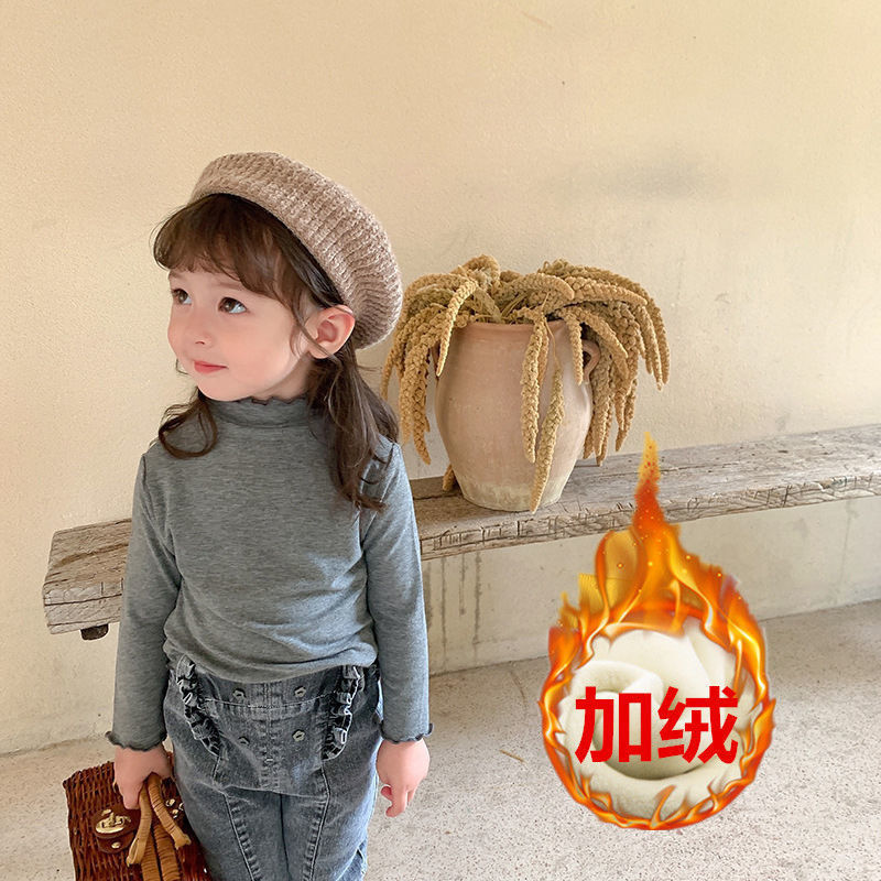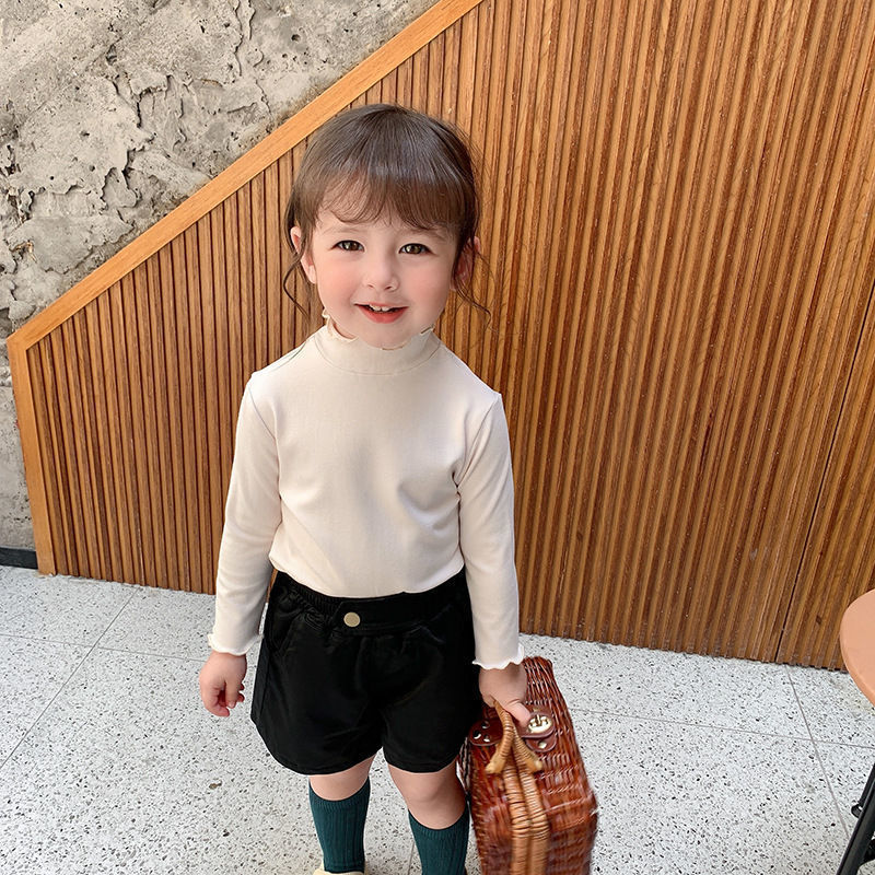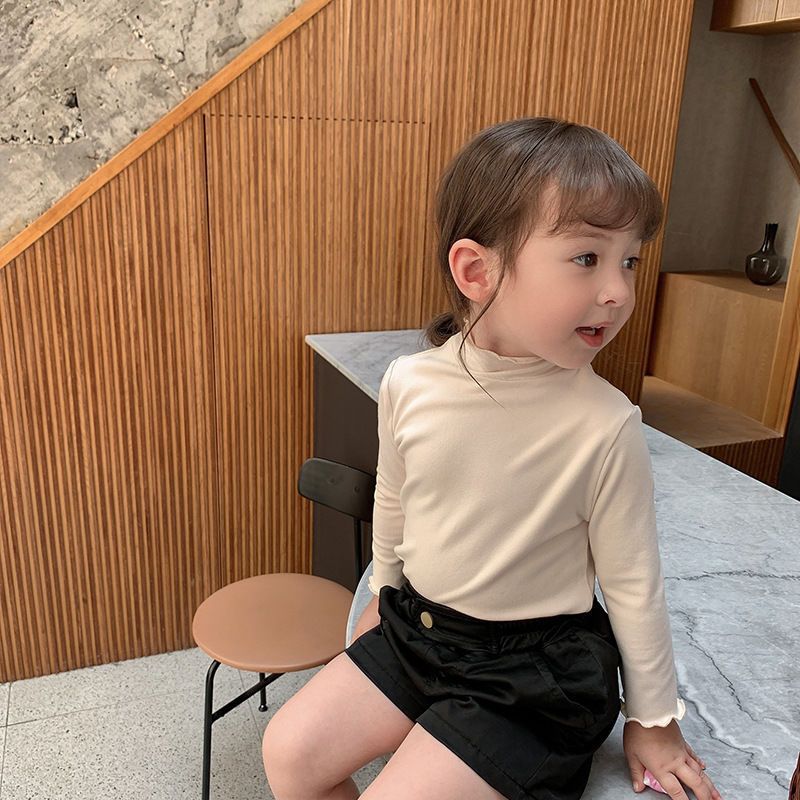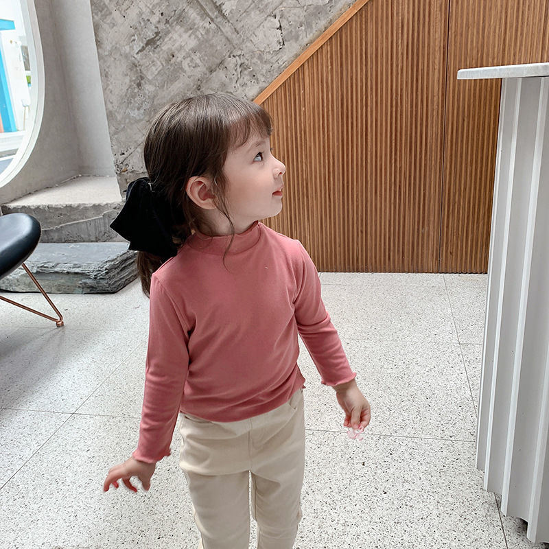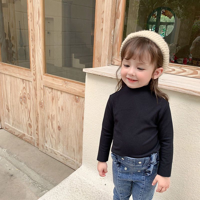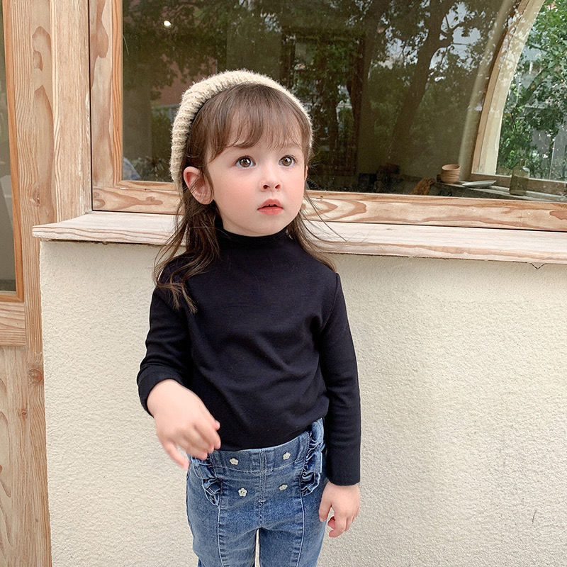 아동복 여아 가을과 겨울 2023 새로운 아동 세미 하이 칼라 베이스 셔츠 겨울 서양식 긴팔 티셔츠 베이비 탑스토어 가기