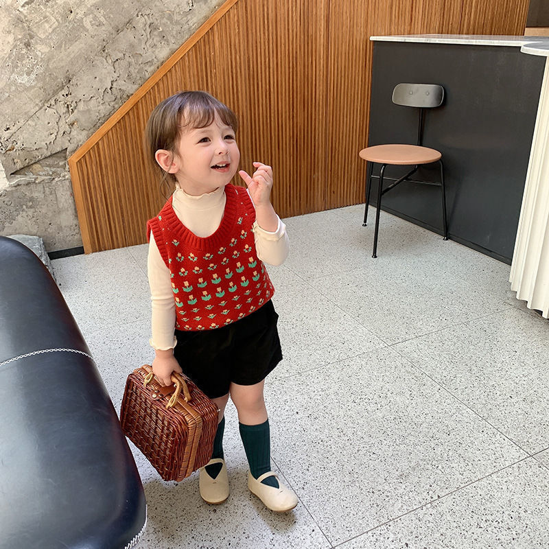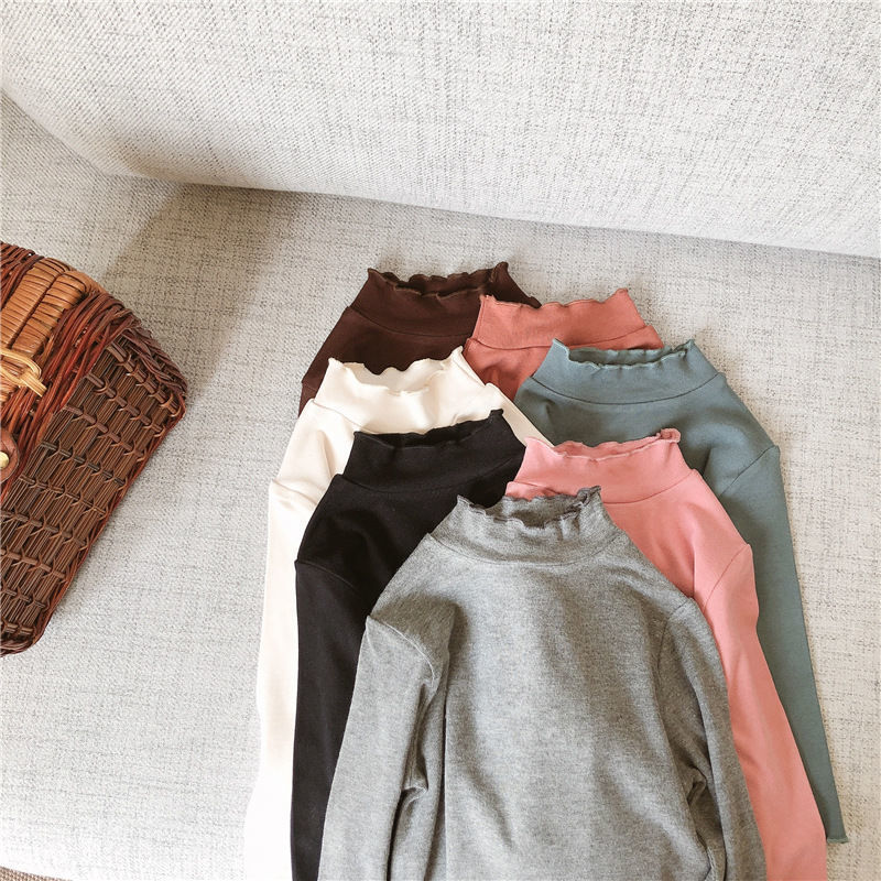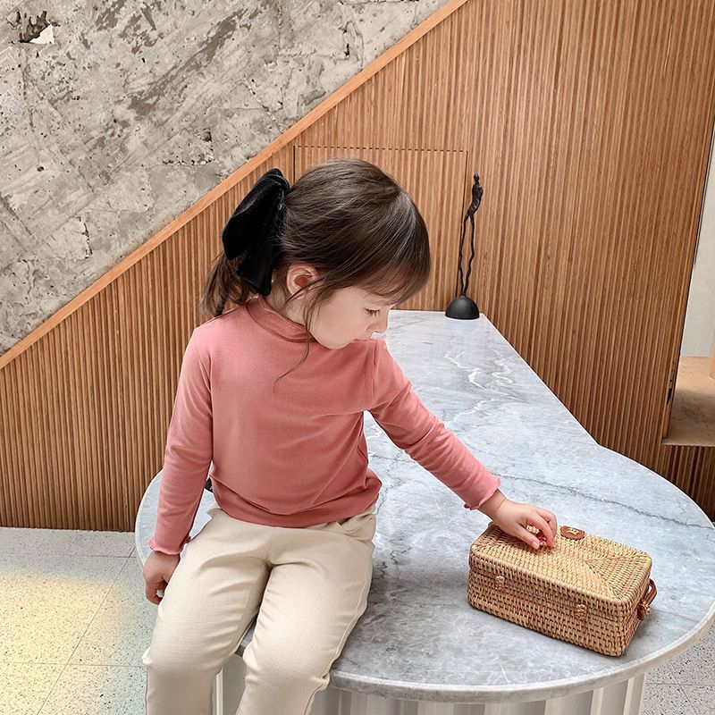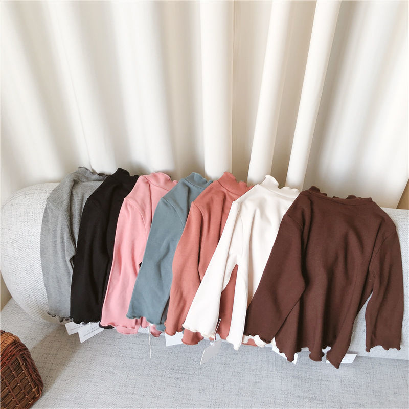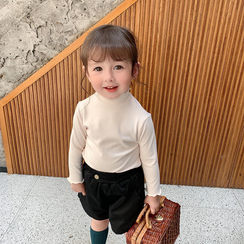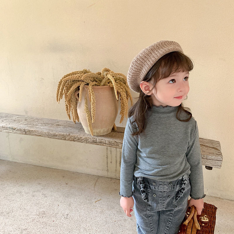 아동복 여아 가을과 겨울 2023 새로운 아동 세미 하이 칼라 베이스 셔츠 겨울 서양식 긴팔 티셔츠 베이비 탑스토어 가기