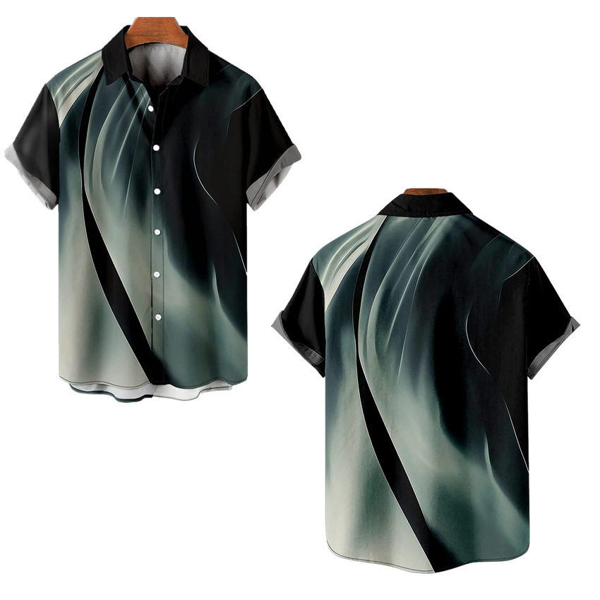 유럽과 미국의 여름 신상품 대형 사이즈 홍콩 남성 셔츠 3D 디지털 프린팅 캐주얼 반팔 셔츠 남성복 제조업체 직판스토어 가기