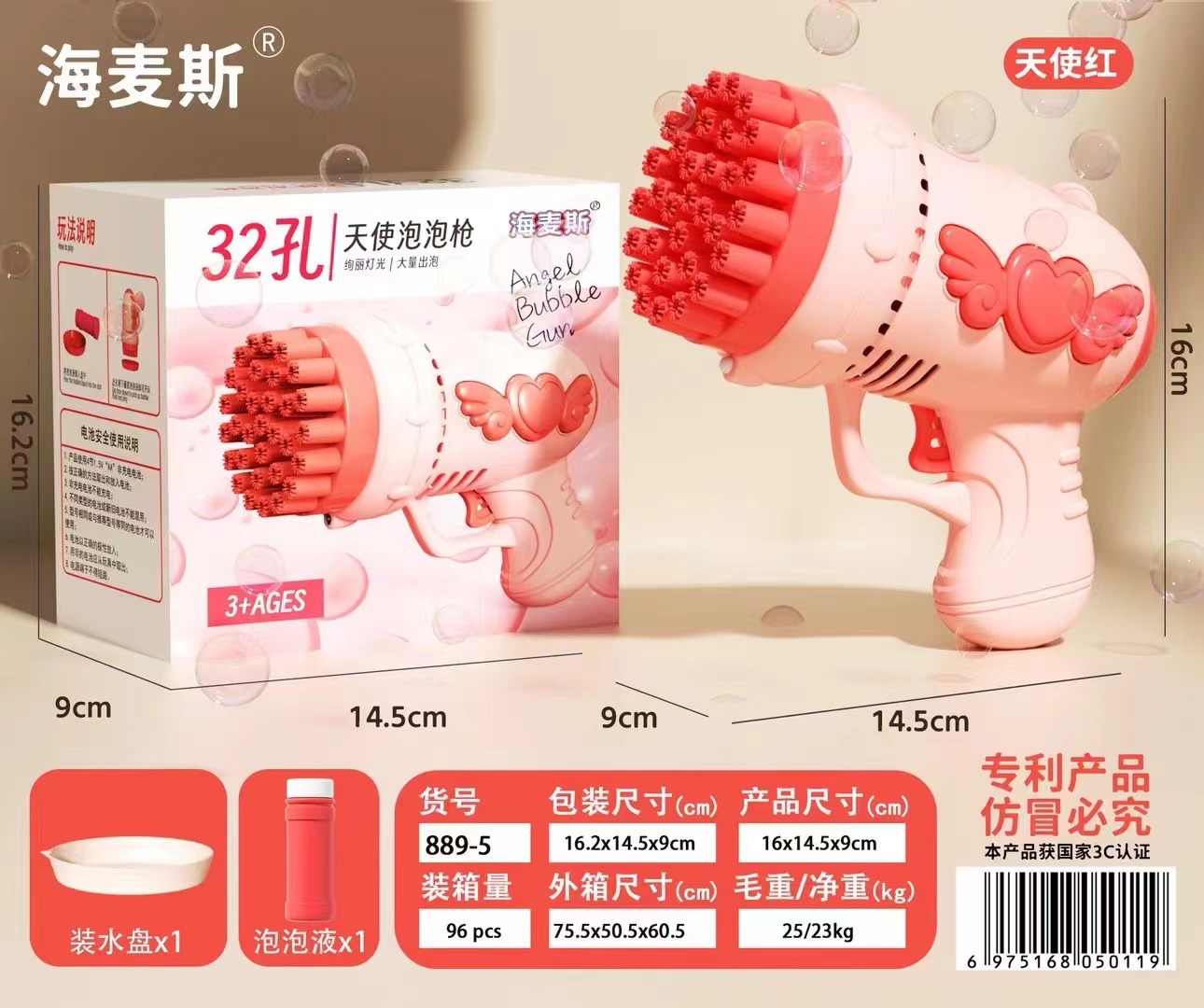 여름 야외 32 홀 천사 버블 머신 전기 버블 건 개틀링 어린이 장난감 야시장 노점 도매