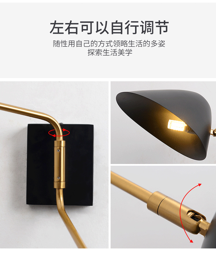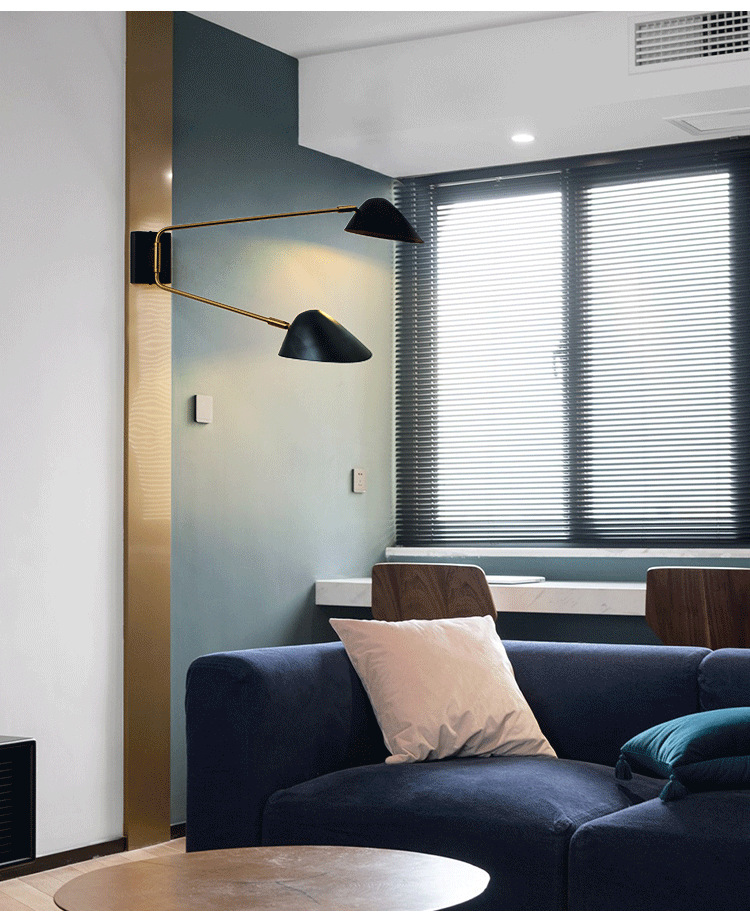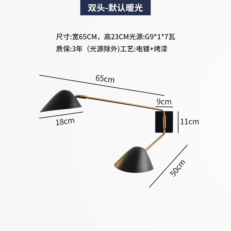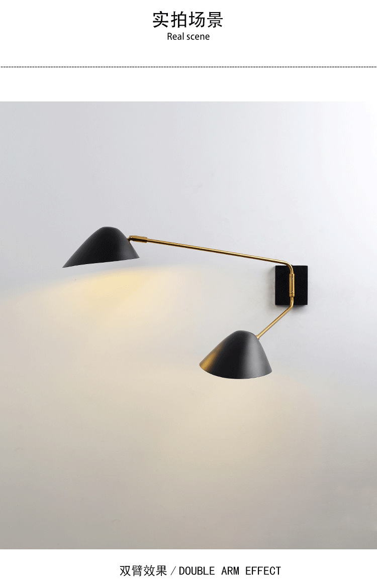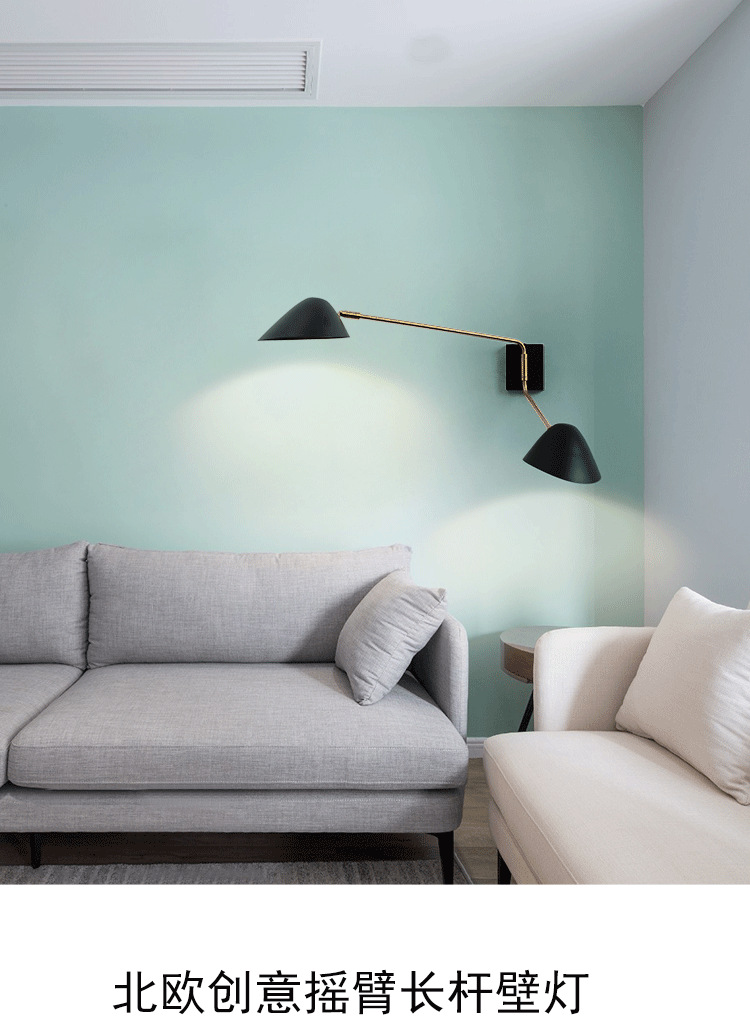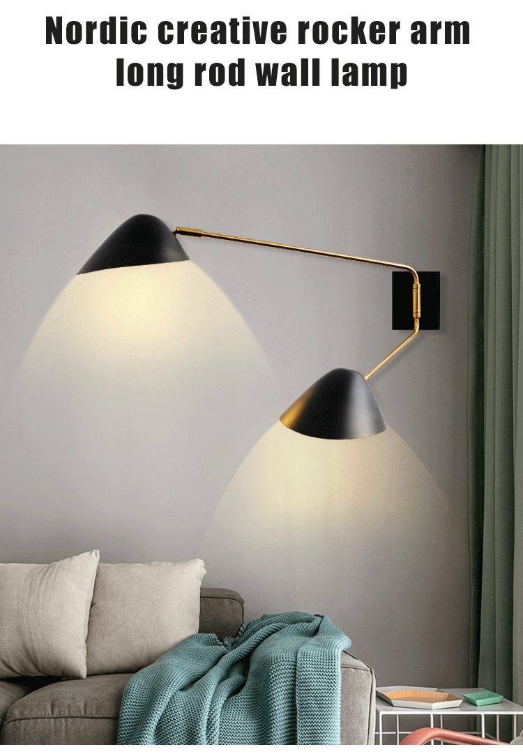 북유럽 항목 럭셔리 창조적 인 침대 옆 캐비닛 연구 스마트 더블 헤드 벽 램프 현대 거실 침실 예술 긴 팔 단일 헤드 램프