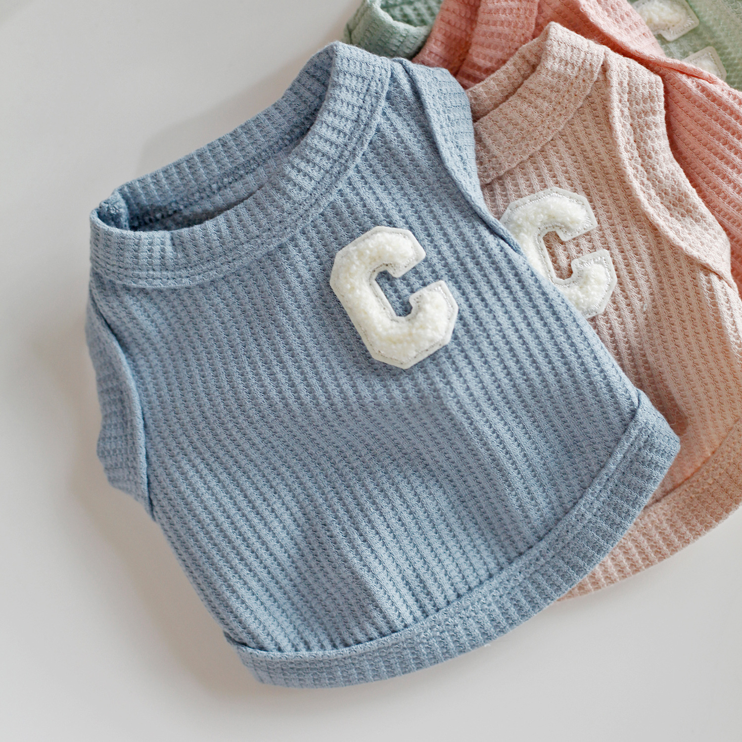 2023 봄 여름 강아지 옷 와플 짧은 조끼 비숑 테디 슈나우저 애완동물 의류 제조업체 도매스토어 가기