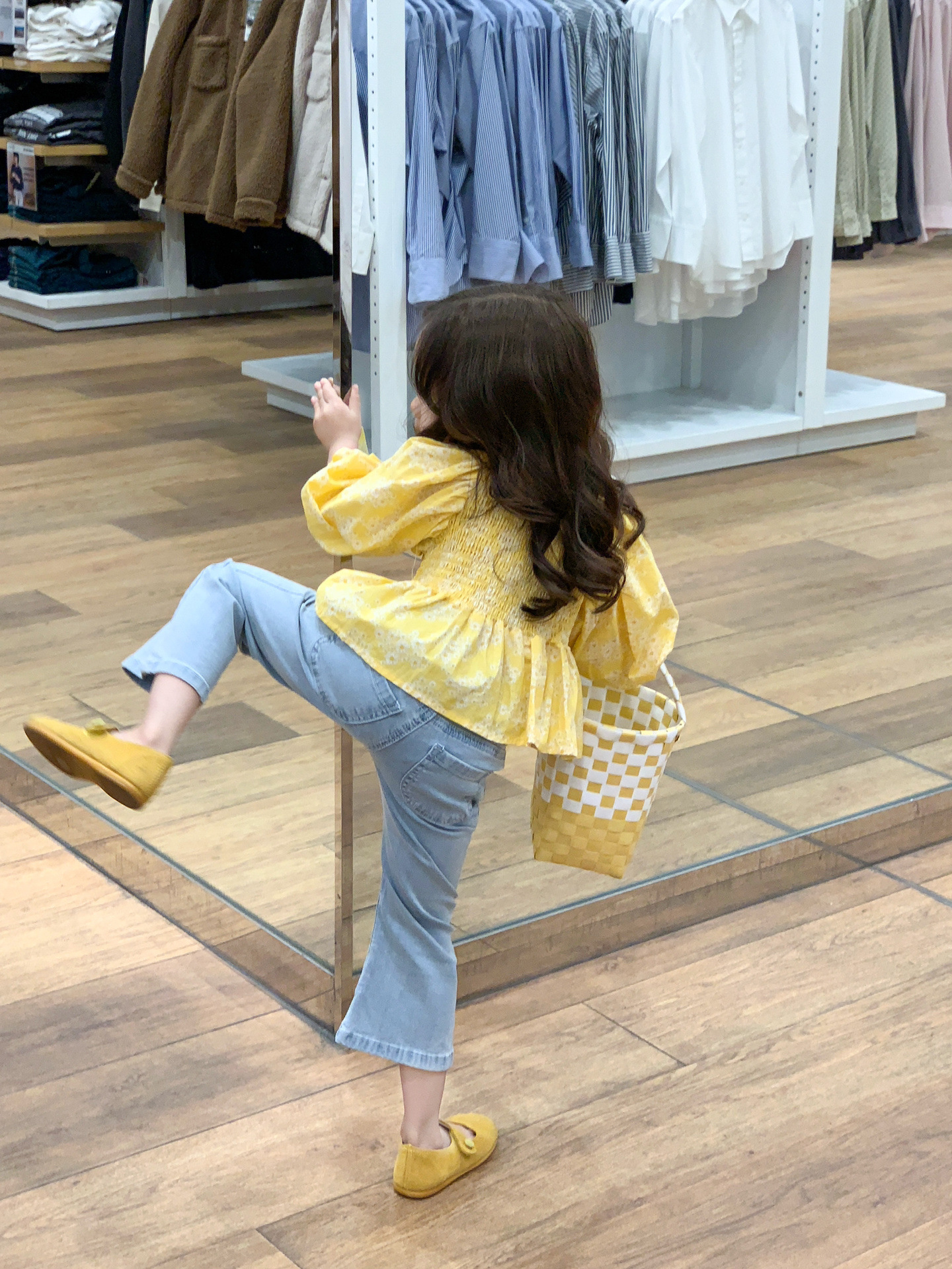 • DM2306028-Yellow 바닥 꽃 인형 셔츠