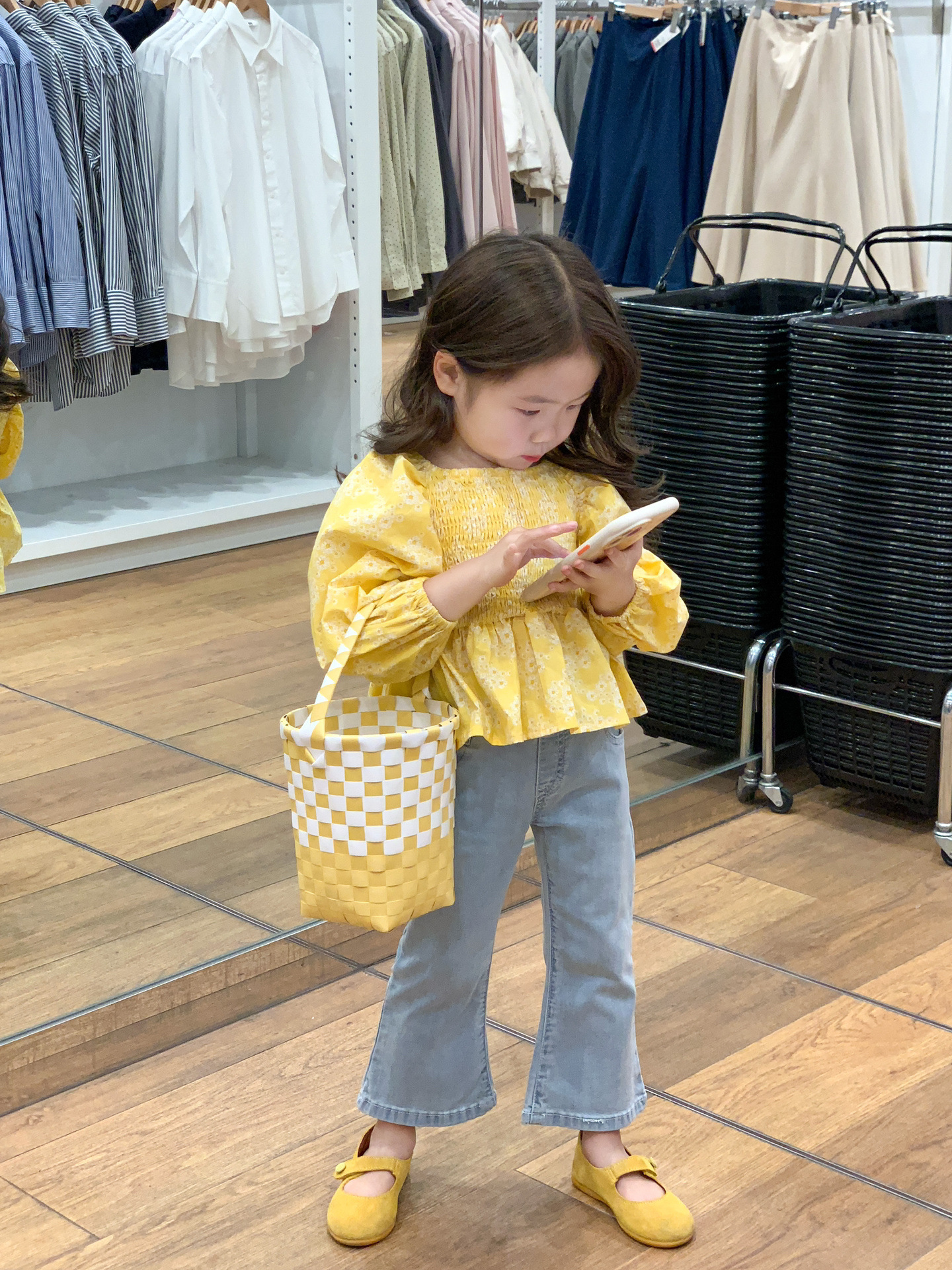 봄 작은 신선한 노란색 꽃 버블 슬리브 인형 셔츠 + 마이크로 풀 청바지의 여자 한국어 버전 세트 별도 촬영스토어 가기