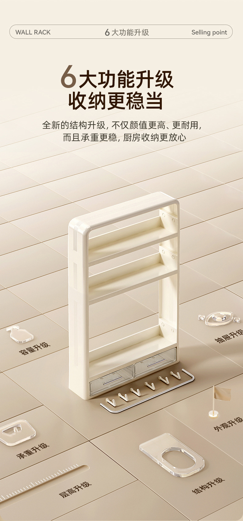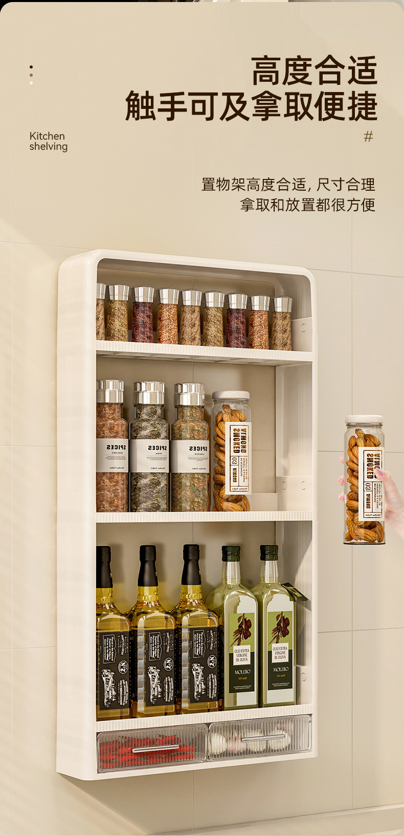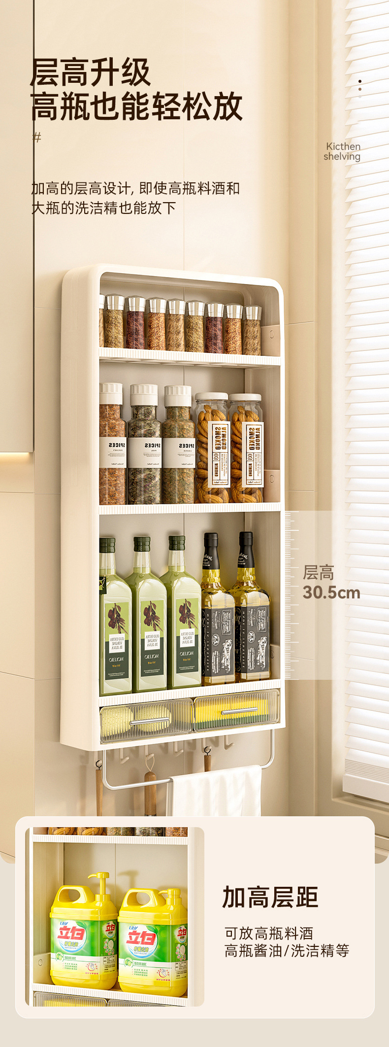 주방 수납 선반 벽걸이 형 펀치 프리 수납 선반 잡다한 벽걸이 형 다기능 조미료 수납 선반