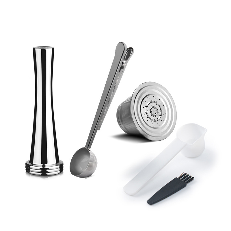 국경 간 호환 네시 커피 캡슐 스테인레스 스틸 재사용 충전 캡슐 쉘 컵 국자 세트