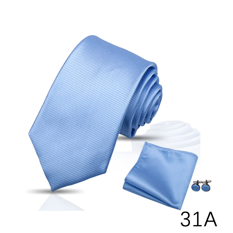 남성용 솔리드 컬러 스트라이프 넥타이 스퀘어 스카프 커프스 단추 3 피스 비즈니스 정장 연회 웨딩 핸드 타이 7.5cm 넥타이스토어 가기