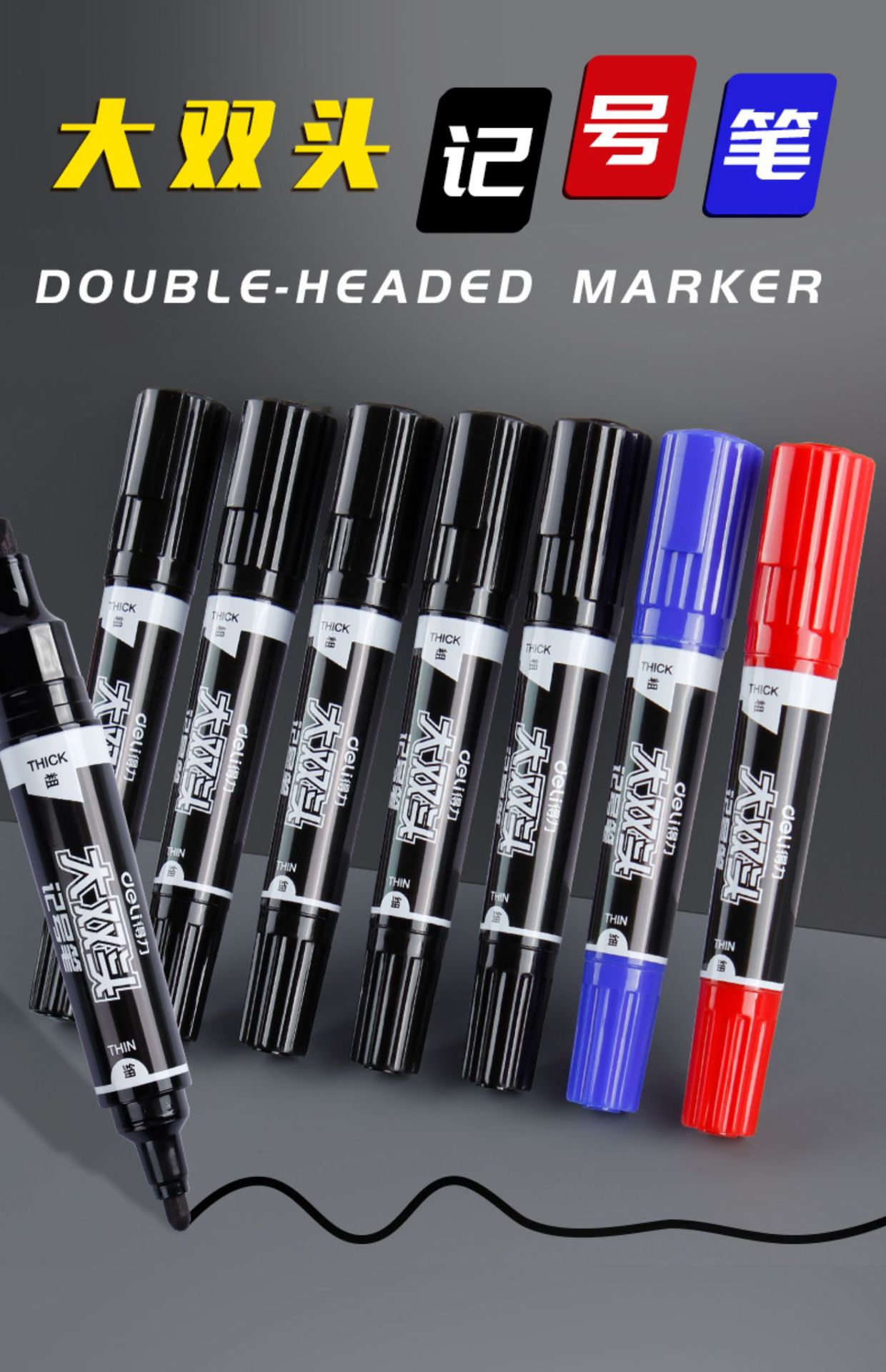 델리 더블 헤드 마커 블랙 유성 방수 오일 방지 페이딩 방지 마크 후크 라인 포스터 펜
