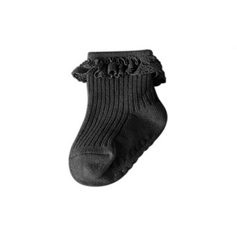 아마존 어린이 미끄럼 방지 봄과 가을 면 양말 유아 0-6 개월 소녀 단색 레이스 양말 아기 바닥 양말