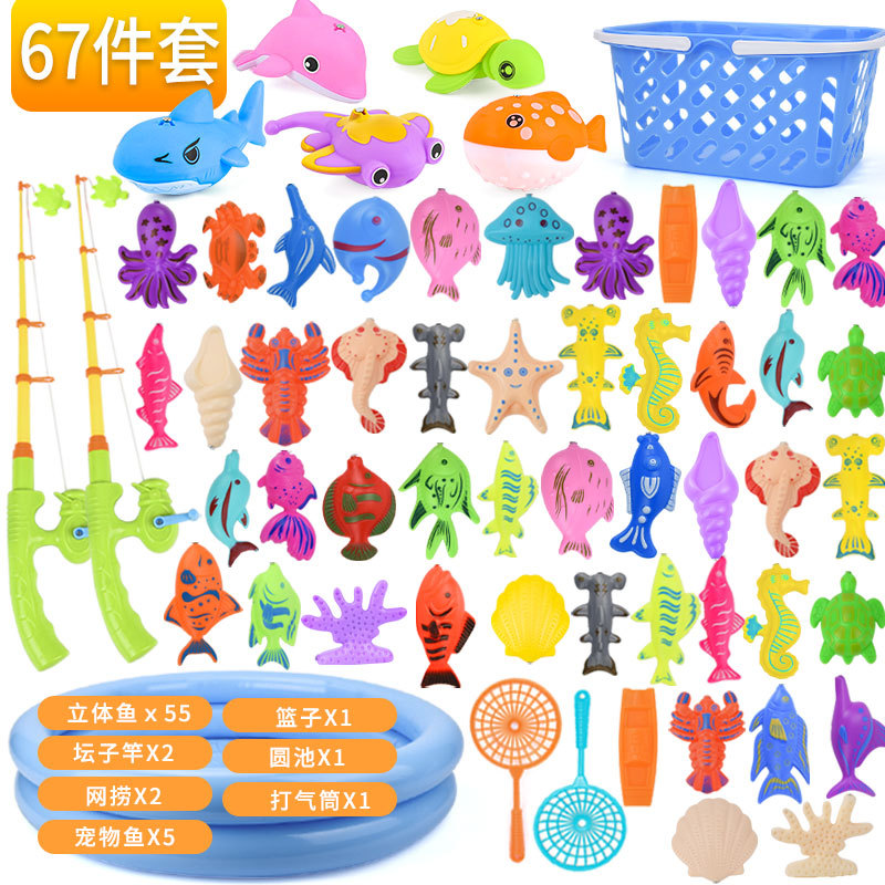 아마존 크로스 보더 뜨거운 여름 물 자석 입체 물고기 67 피스 낚싯대 더블 라운드 수영장 낚시 장난감