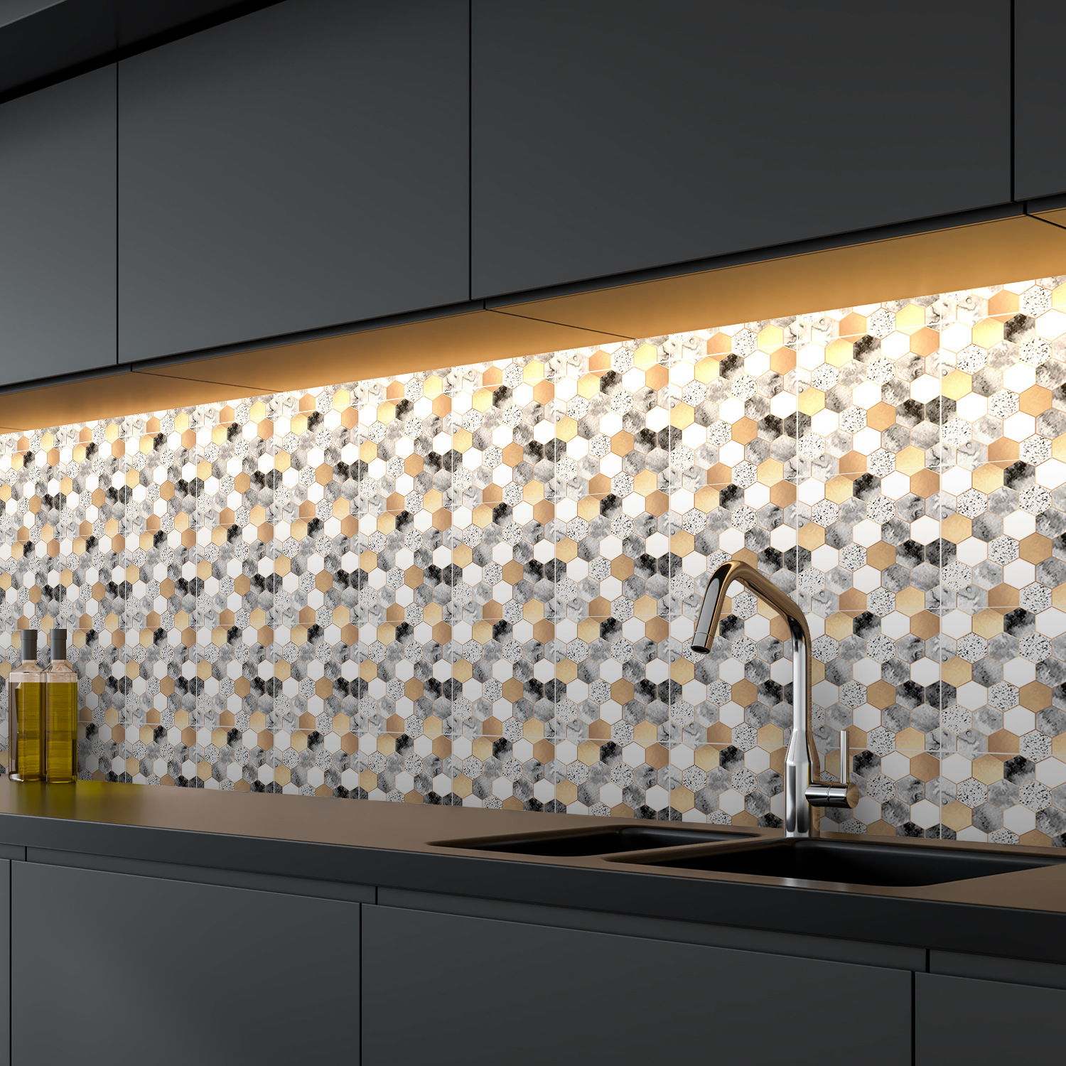 Funlife 아마존 23 년 새로운 미국 대리석 콜라주 두꺼운 내마 모성 방수 타일 스티커 KTS028
