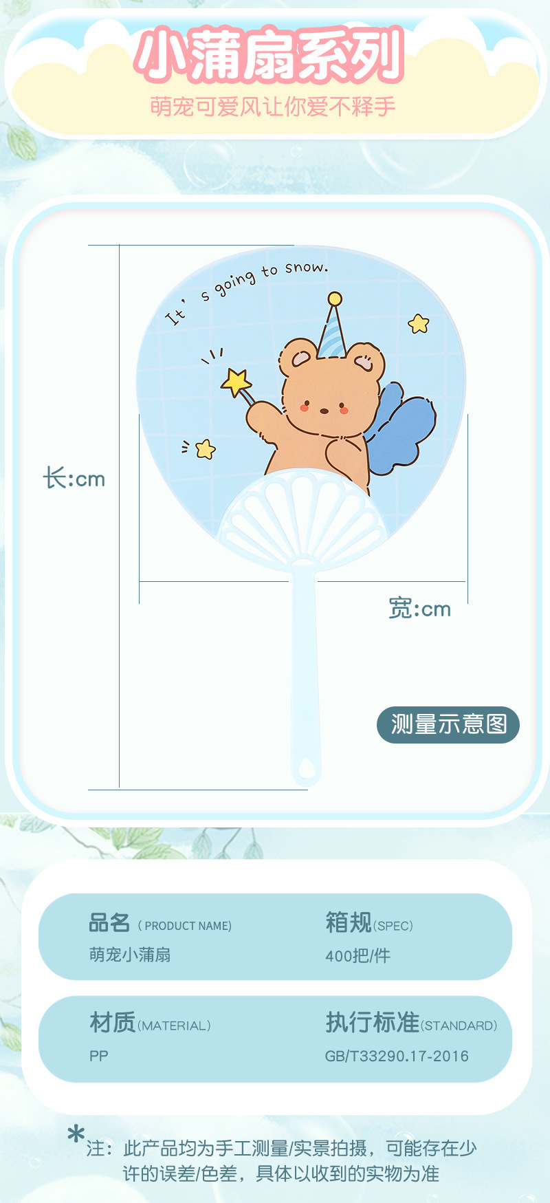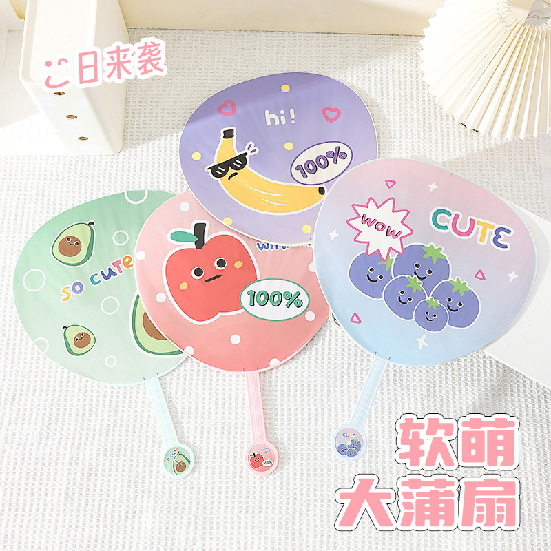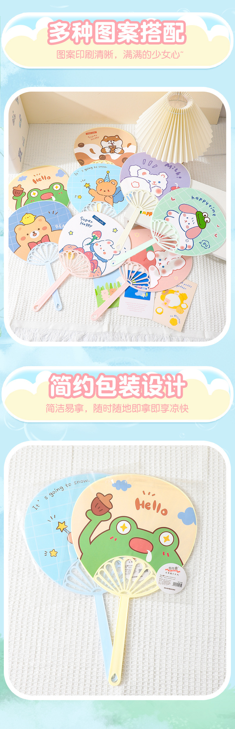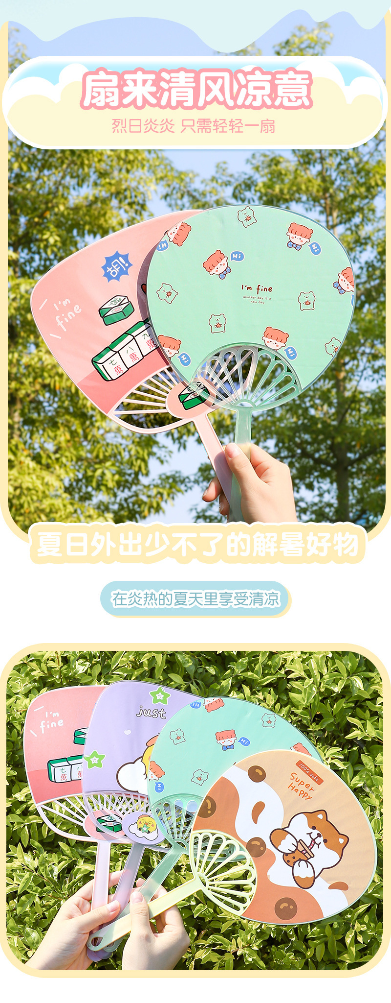 새로운 Ins 스타일 귀여운 큰 Pu 팬 휴대용 작은 팬 여름 만화 라운드 팬 라운드 팬 손 크랭크 작은 Pu 팬스토어 가기