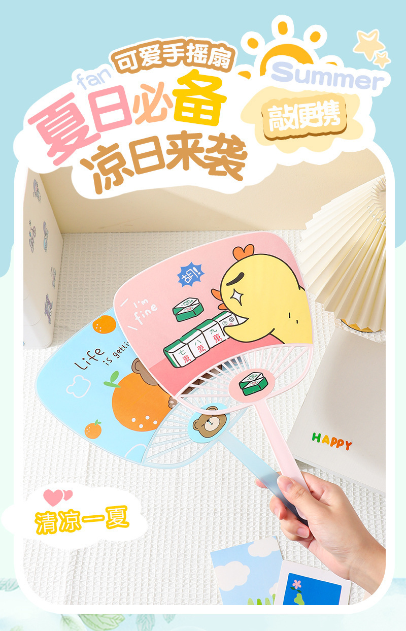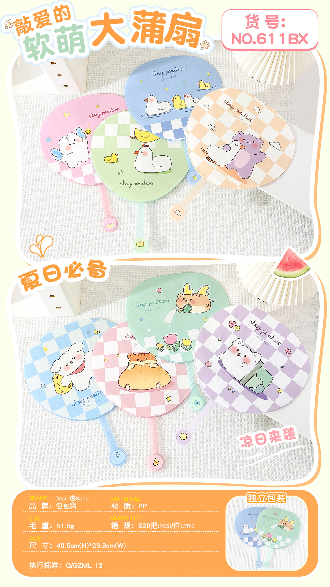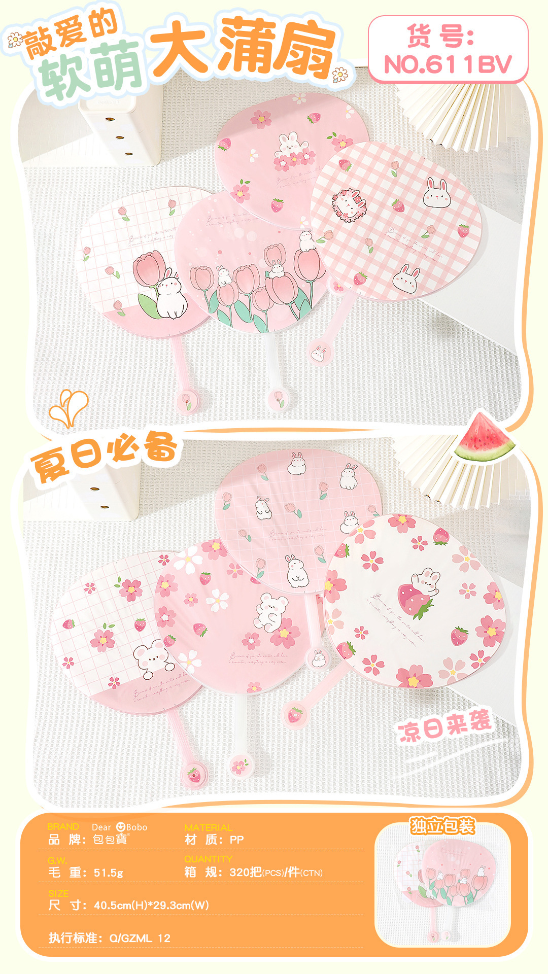 새로운 Ins 스타일 귀여운 큰 Pu 팬 휴대용 작은 팬 여름 만화 라운드 팬 라운드 팬 손 크랭크 작은 Pu 팬스토어 가기