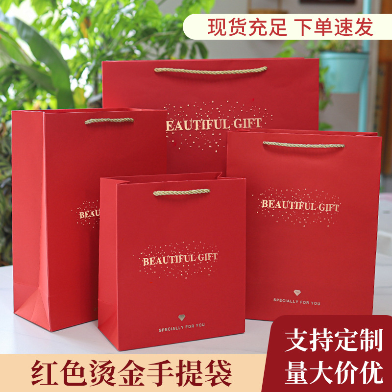 즉시 출고 가능한 빨간색 선물 가방, 결혼 축하 포장 가방, 빨간색 카드지 금박 핸드백, 선물 종이 가방, 제조업체 도매스토어 가기