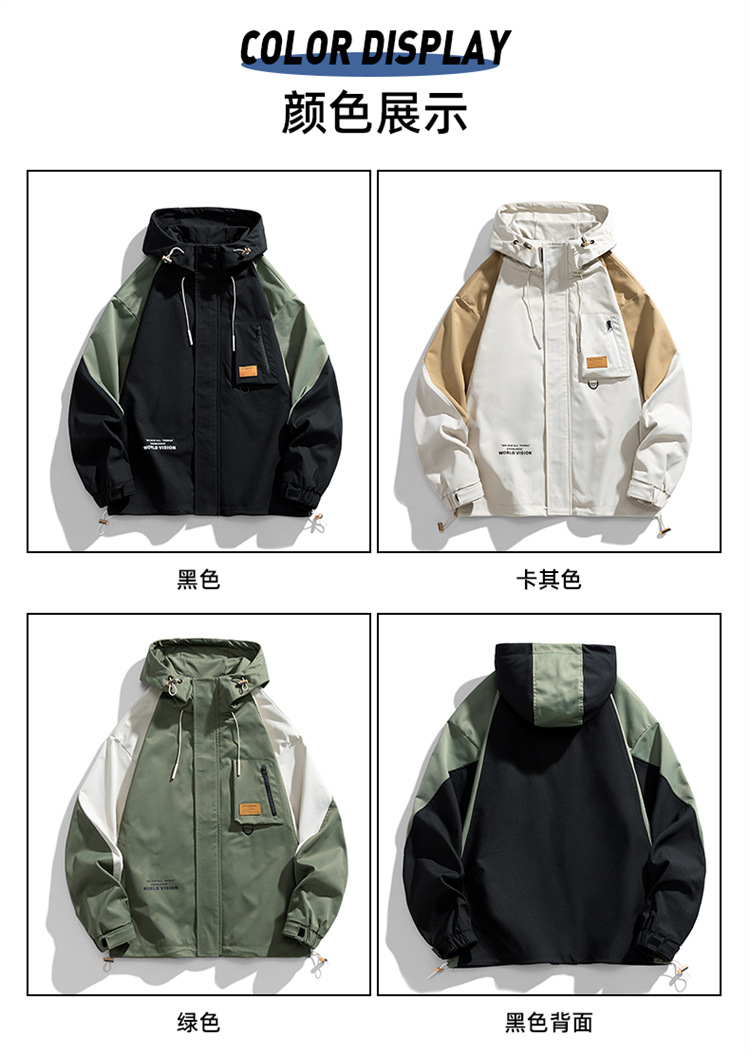 2025년 남성용 작업복 재킷 봄 가을 루즈핏 후드 캐주얼 배색 대형 캐주얼 재킷 남성 패션스토어 가기