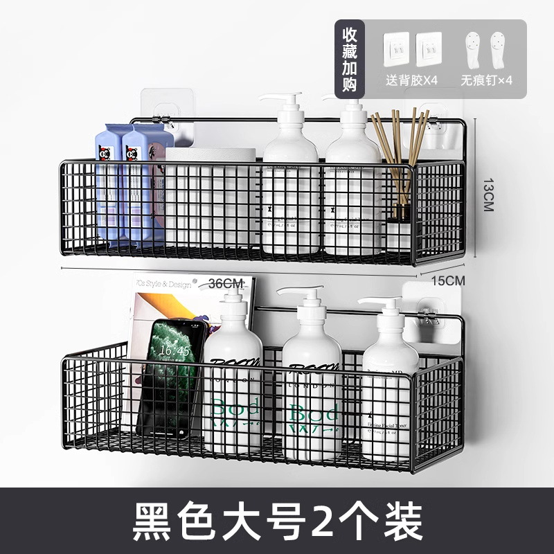 • [아이언 그리드 수납선반] - 대형 블랙 2팩(후크 10개 포함)