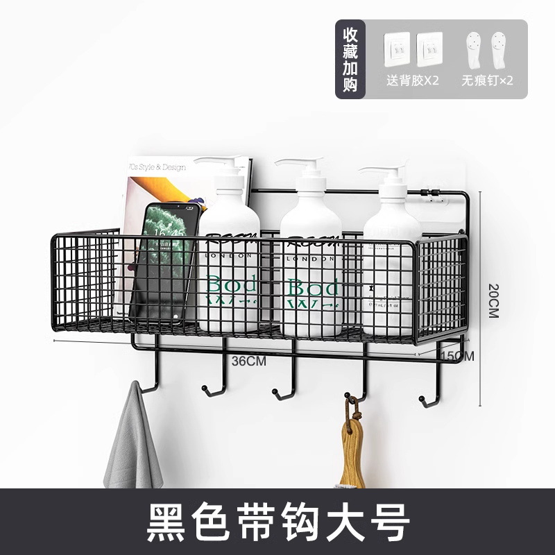• [아이언 그리드 수납선반] - 대형 블랙(고리 5개 포함)