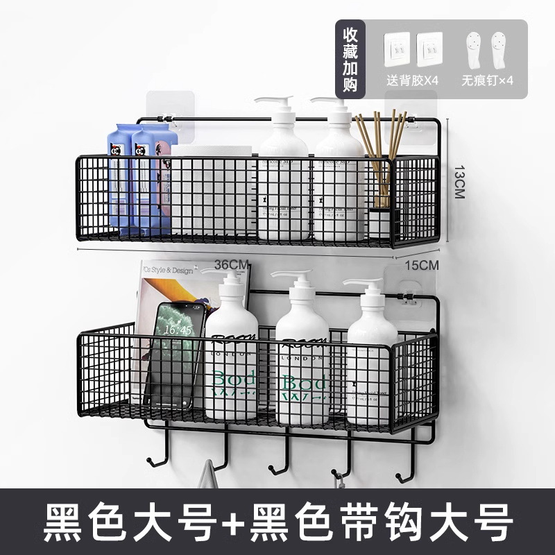 • [아이언 그리드 수납선반] - 대형 블랙 2팩(후크 5개 포함)