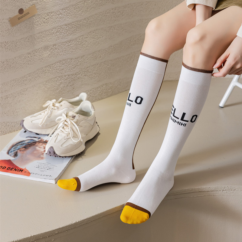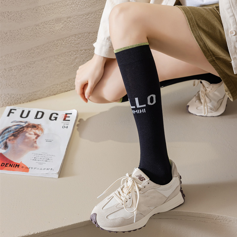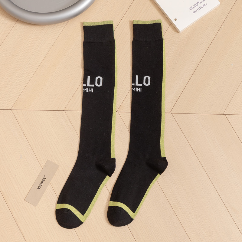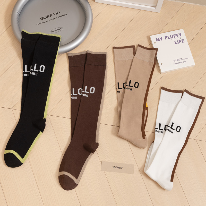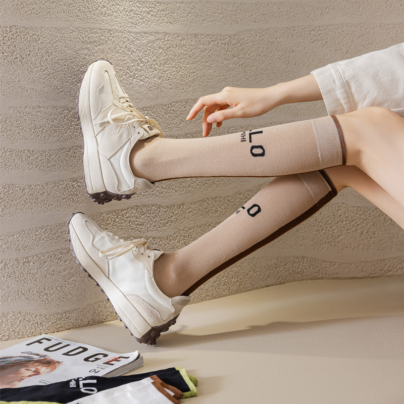 여성을위한 새로운 유럽 패션 브랜드 편지 송아지 양말 봄과 여름 얇은 줄무늬 다목적 스타킹 스포츠 무릎 길이 양말