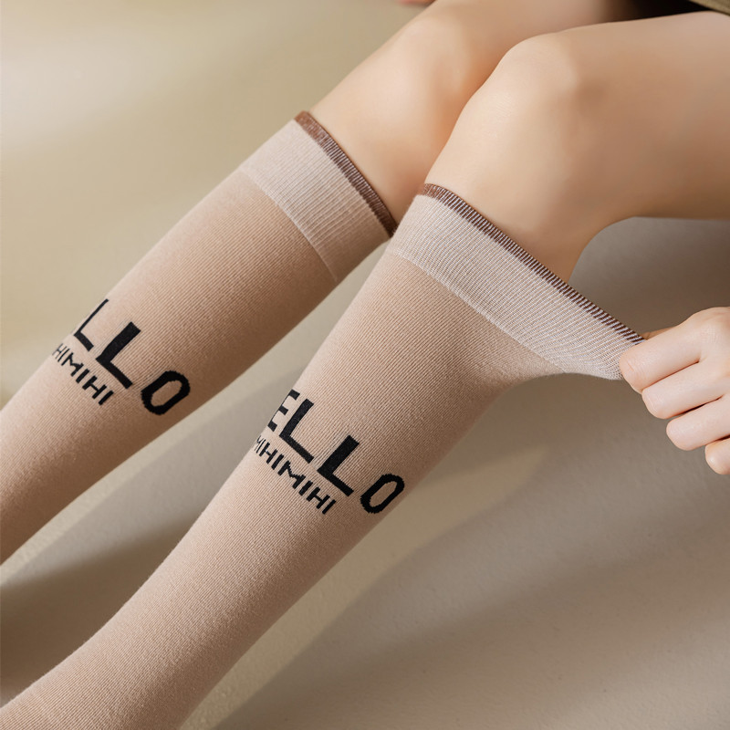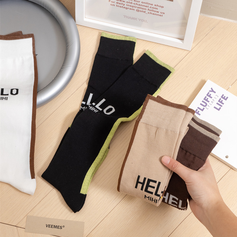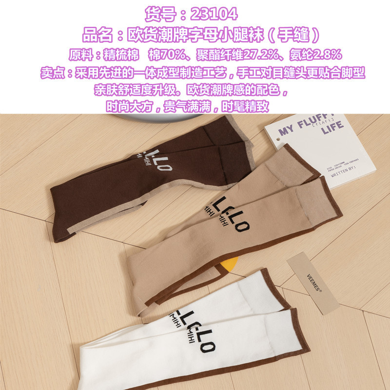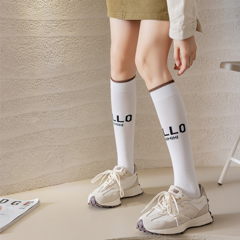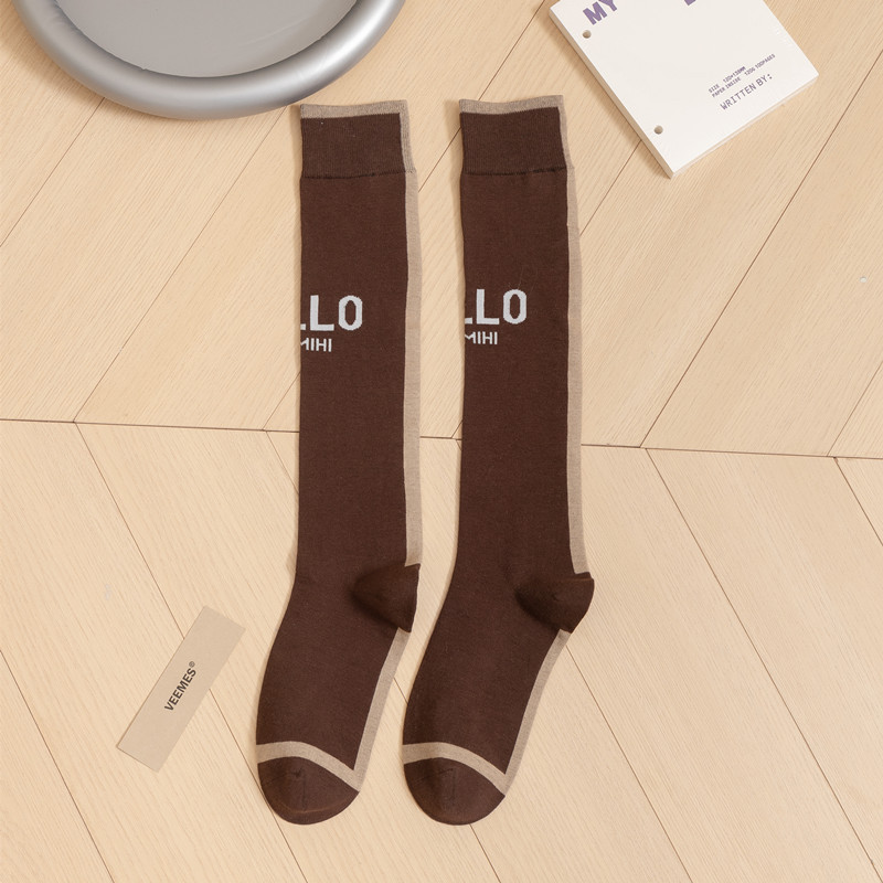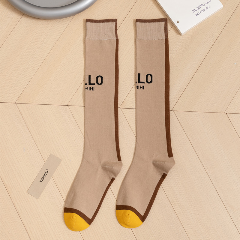 여성을위한 새로운 유럽 패션 브랜드 편지 송아지 양말 봄과 여름 얇은 줄무늬 다목적 스타킹 스포츠 무릎 길이 양말