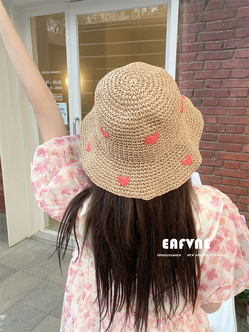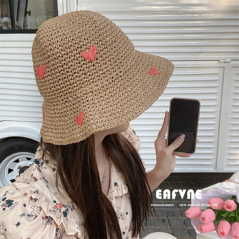 안티 자외선 큰 처마 장식 어부 모자 여자의 여름 짠 사랑 밀짚 모자 해변 통기성 차양 자외선 차단제 분지 모자스토어 가기