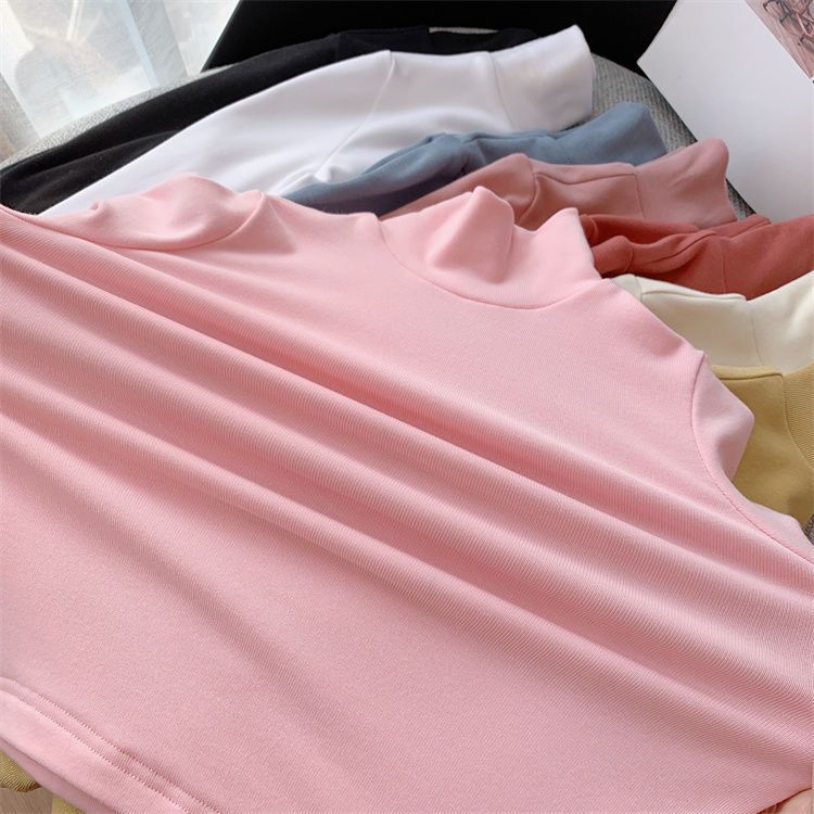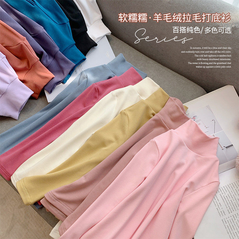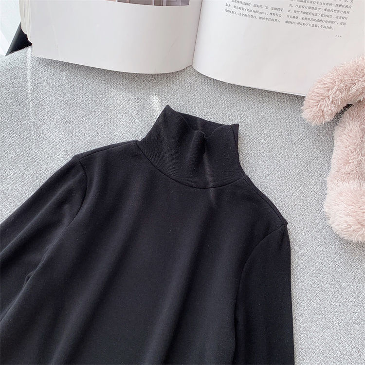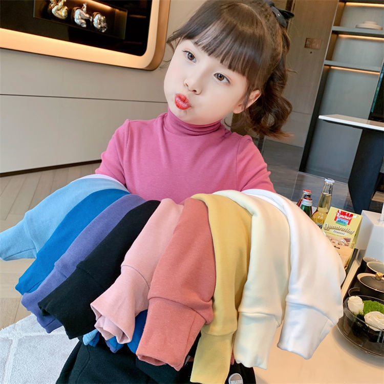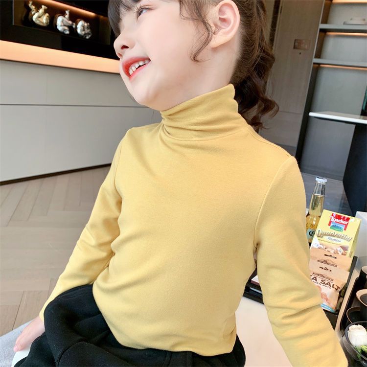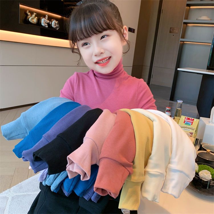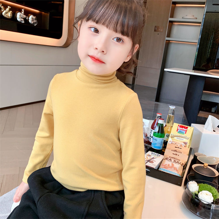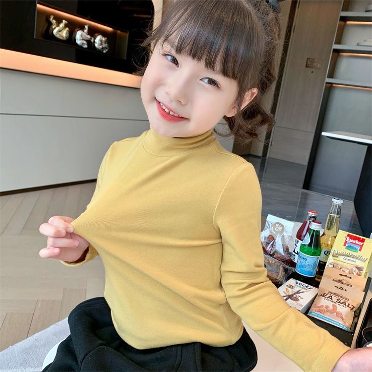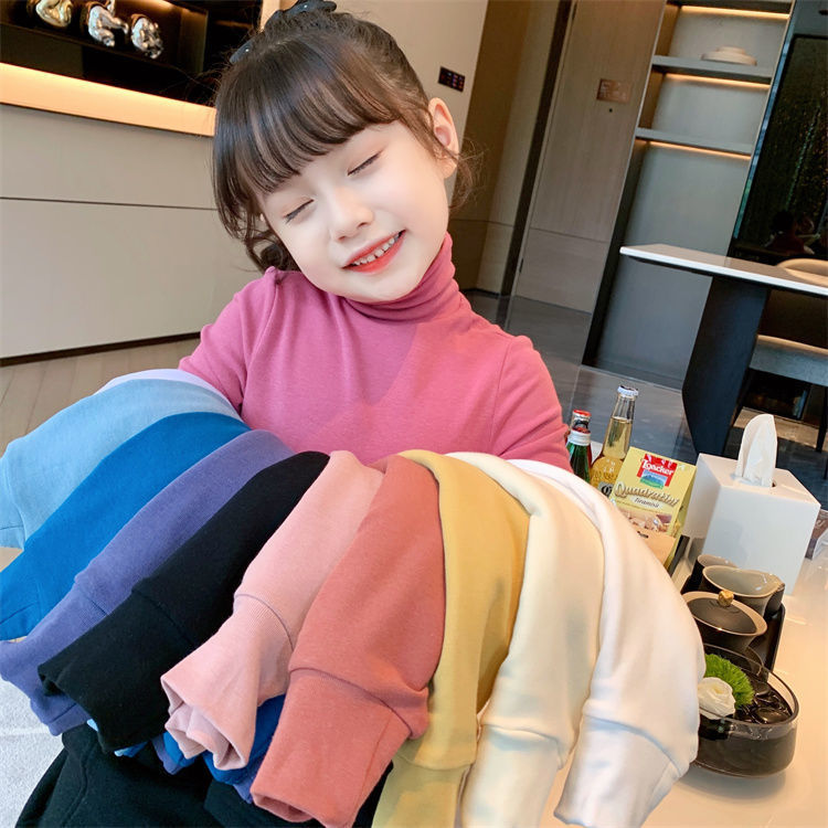 여자 하이 칼라 베이스 셔츠 가을과 겨울 새로운 어린이 긴 소매 티셔츠 면 모든 일치 단색 속옷 베이비 탑스토어 가기
