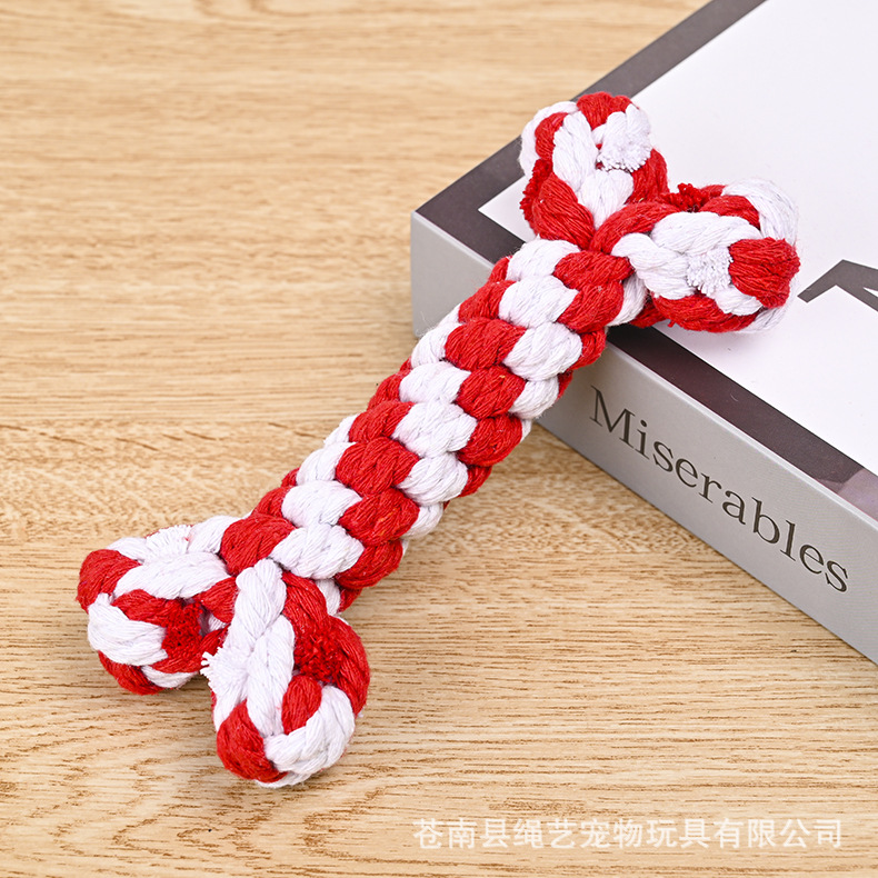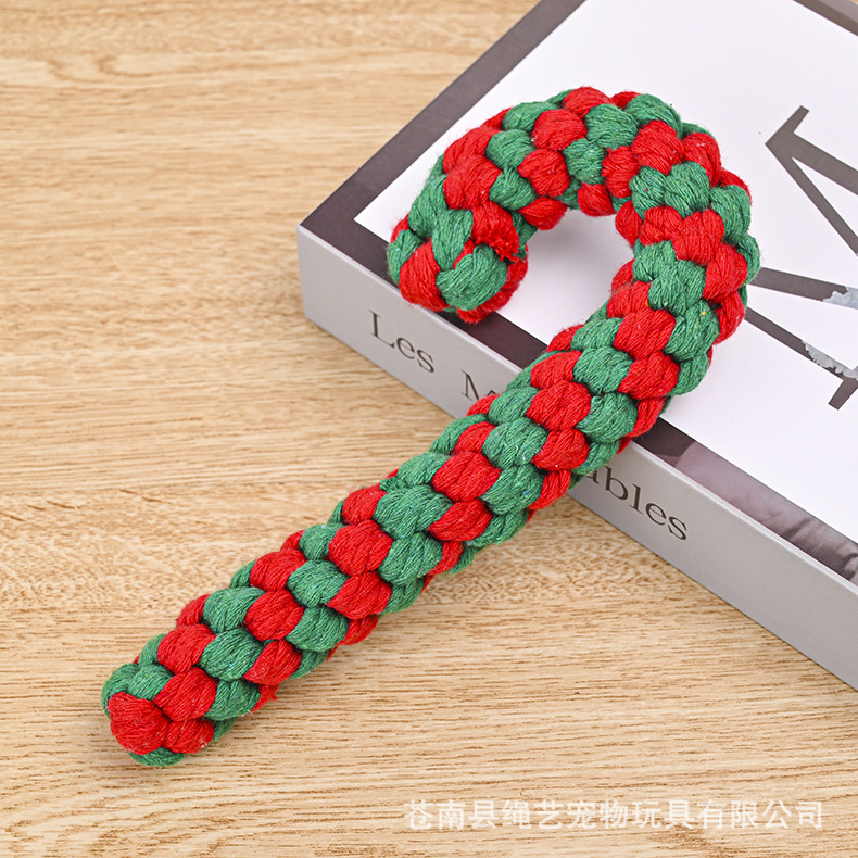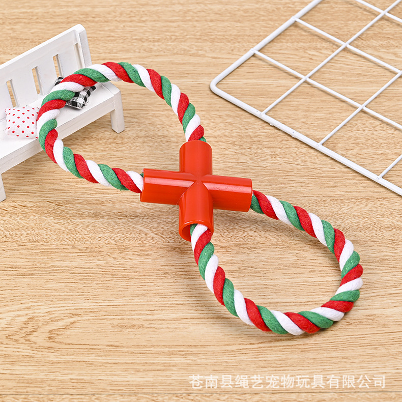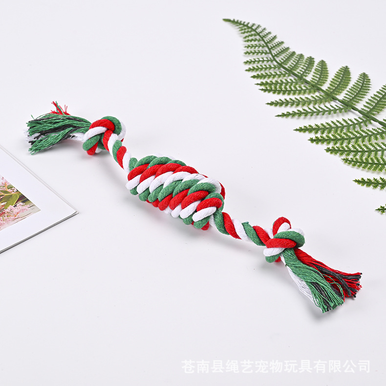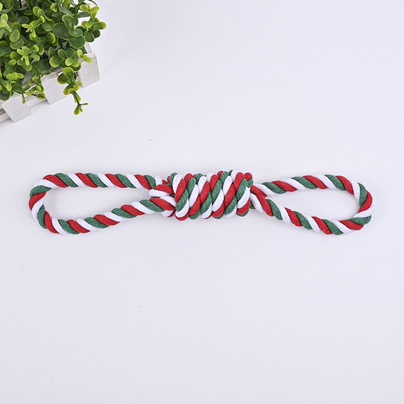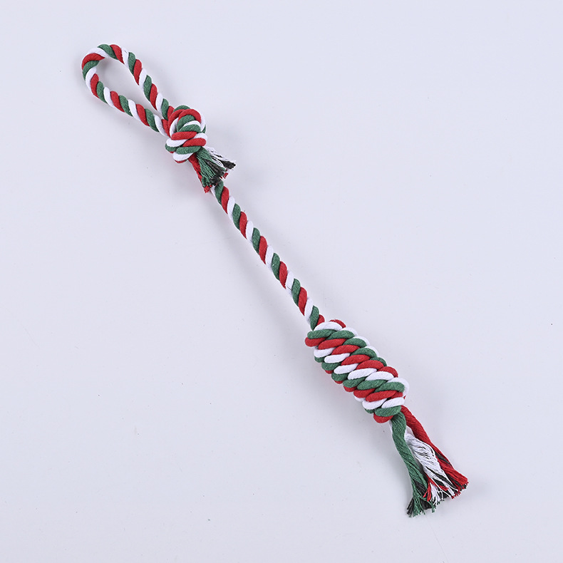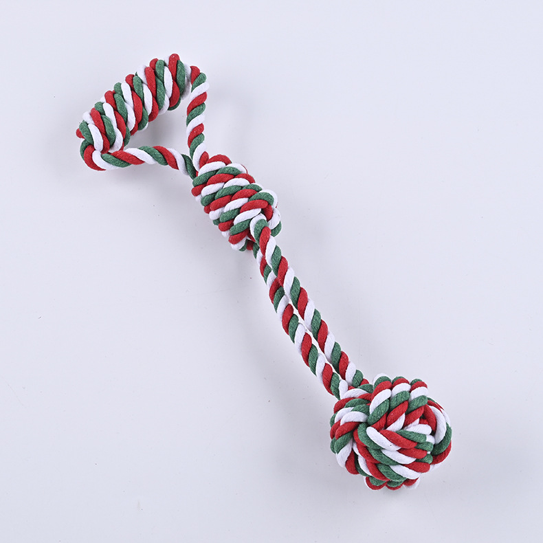 크로스 국경 아마존 애완 동물 면 로프 장난감 조합 세트 크리스마스 레드 그린 화이트 로프 매듭 개 장난감 도매