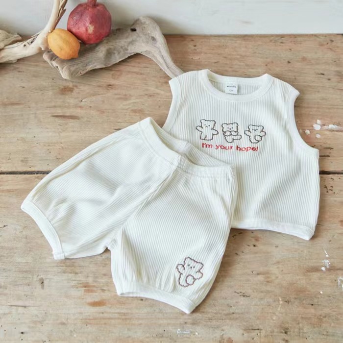 아기 귀여운 외국 스타일 곰 세트 여름 새로운 아기 민소매 조끼 반바지 2 종 세트