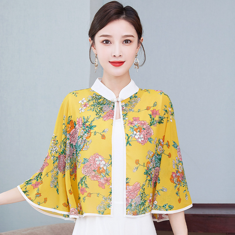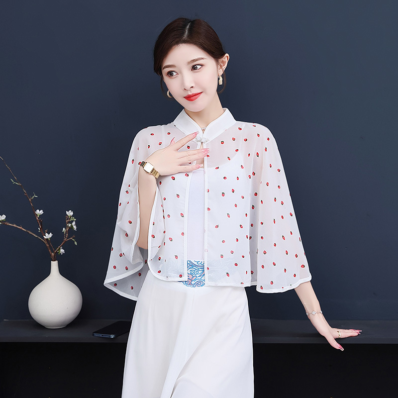 Fudaiyi 9610 슬립 스커트 쉬폰 자외선 차단제 카디건 얇은 작은 숄 외부 블라우스 스몰 코트