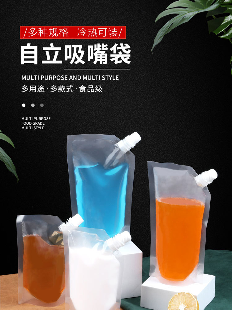 비스듬한 입구가 있는 투명 자립형 포장 백, 일회용 투명 흡입구 백, 두꺼운 아이스 백, 식품 등급 맥주 백스토어 가기