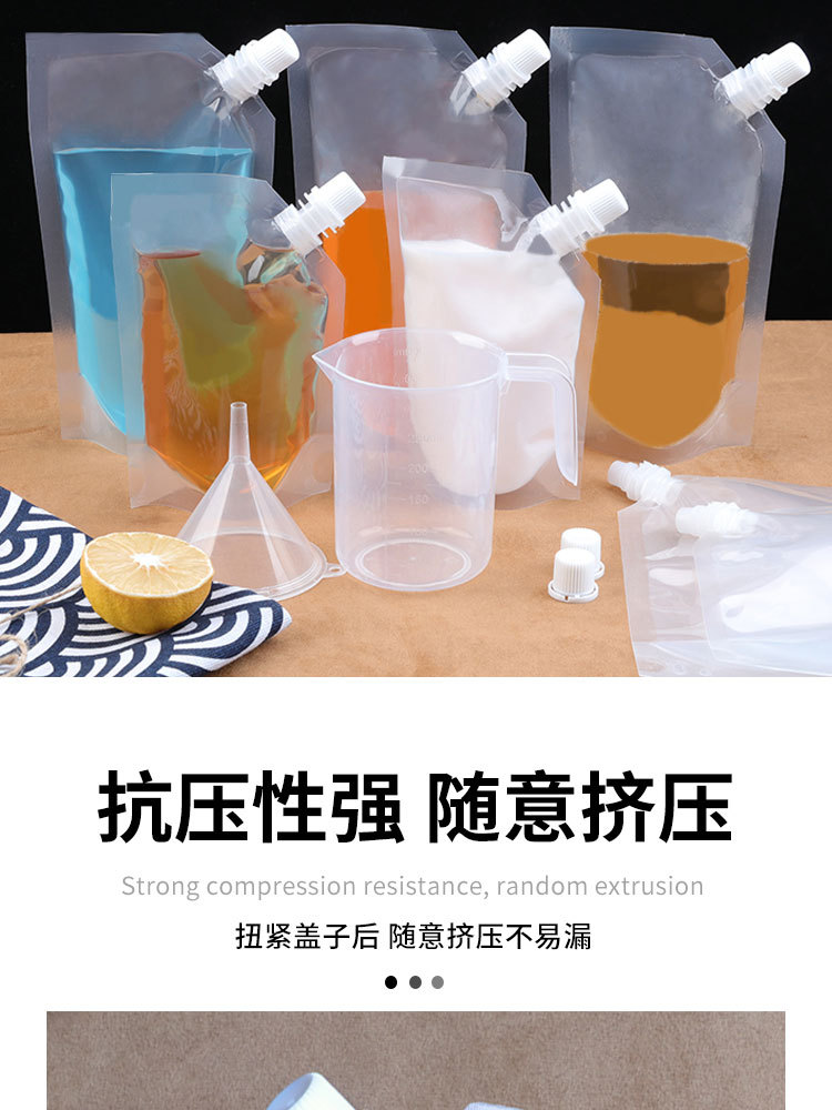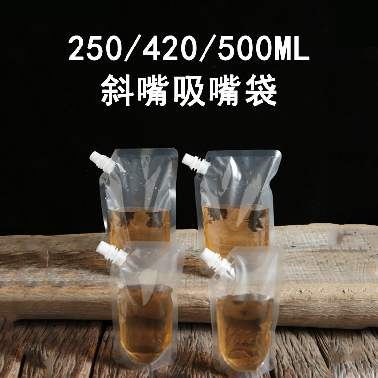 비스듬한 입구가 있는 투명 자립형 포장 백, 일회용 투명 흡입구 백, 두꺼운 아이스 백, 식품 등급 맥주 백